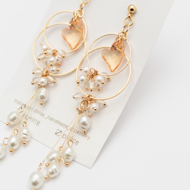 rise._handmade_accessory 様 作品 | No.164 オレンジミニハートチャームと淡水パール風ビーズのピアス