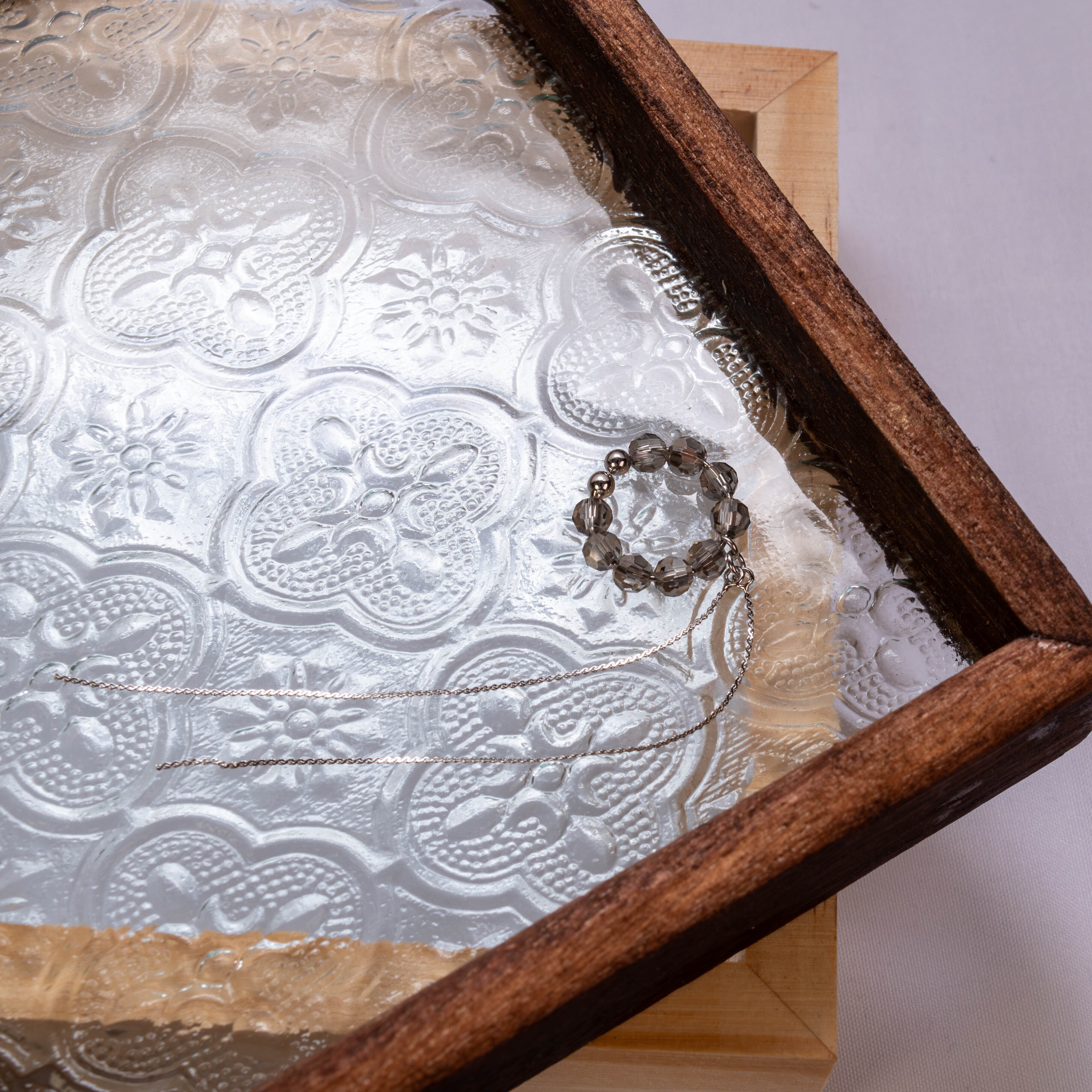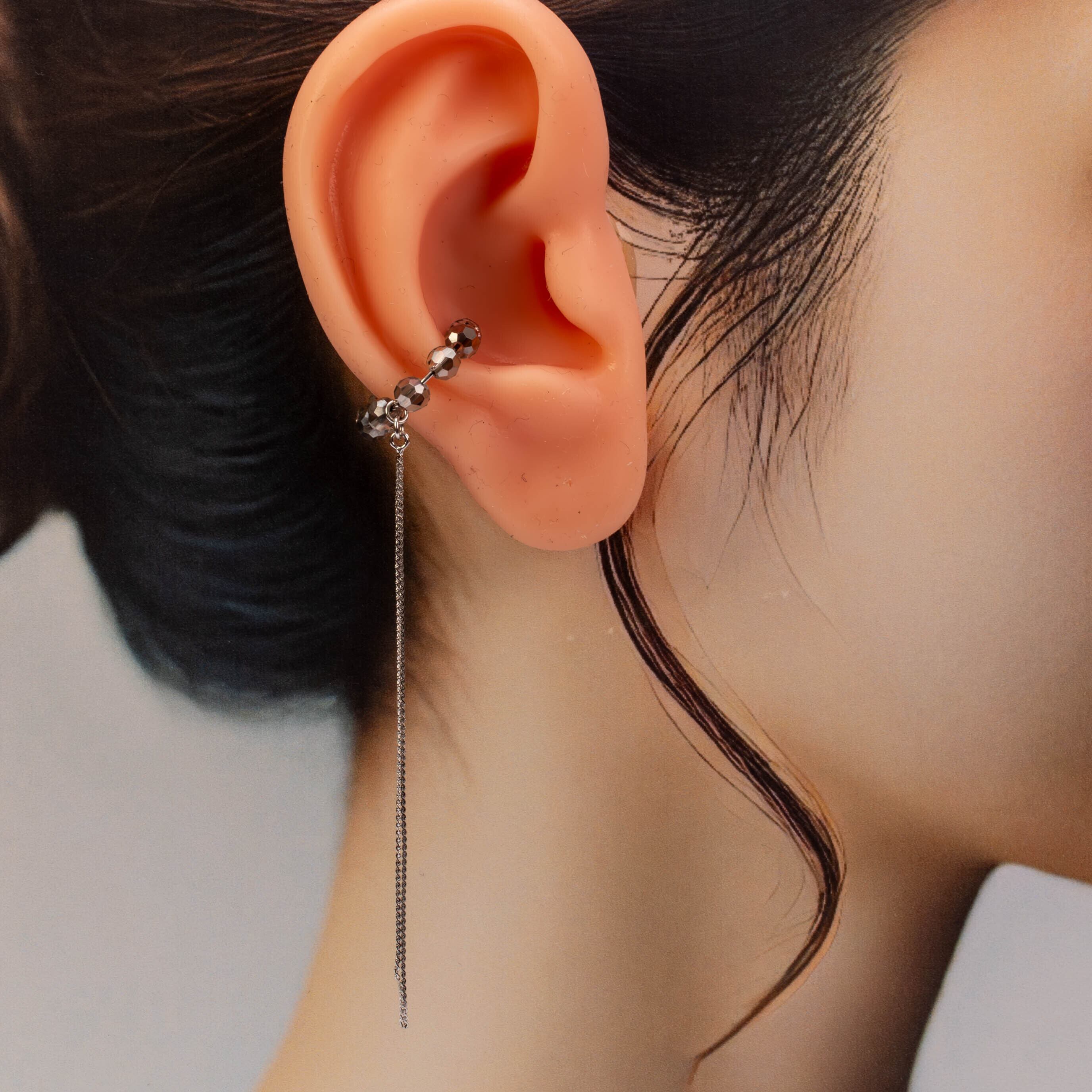 u_ta_ta_ne様| No.57 チャーム付きイヤーカフ(クリアブラック×シルバーチェーン)