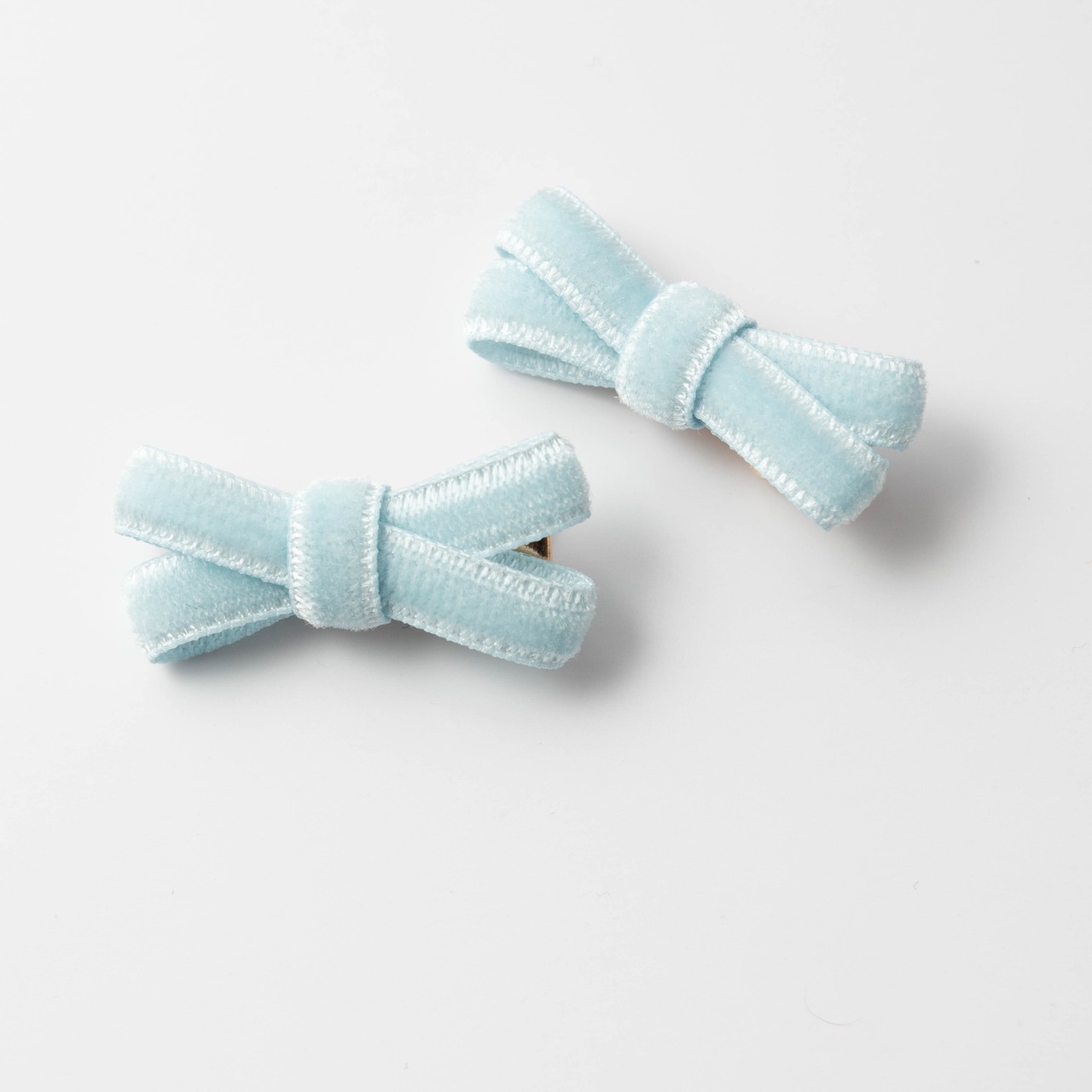ふわっとしたダブルリボンが愛らしいミニヘアクリップ2個セットです。