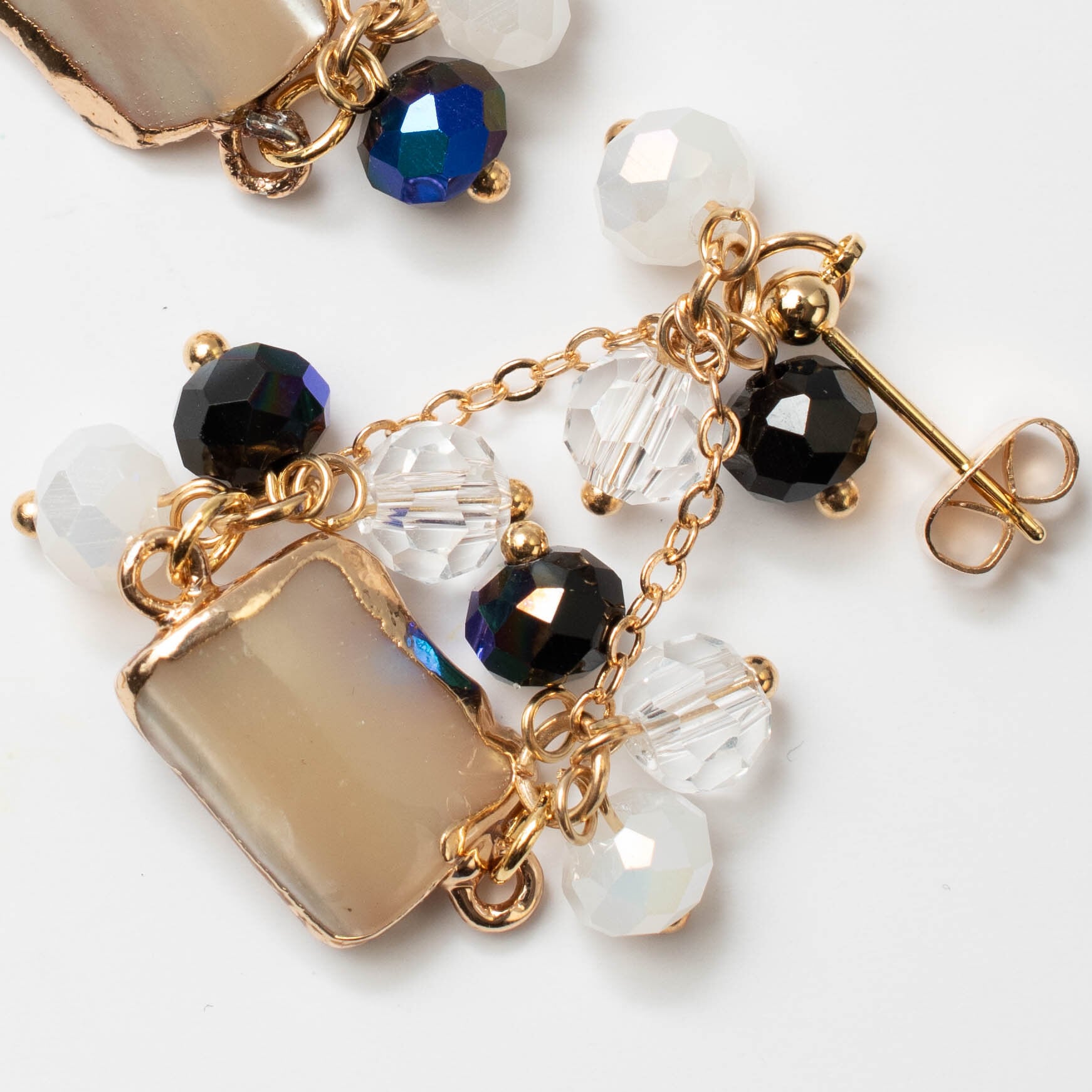 クリアオーロラスパンコールが光を受けて美しく輝き、2色の多面カットガラスが華やかさをプラスしたイヤリングです。