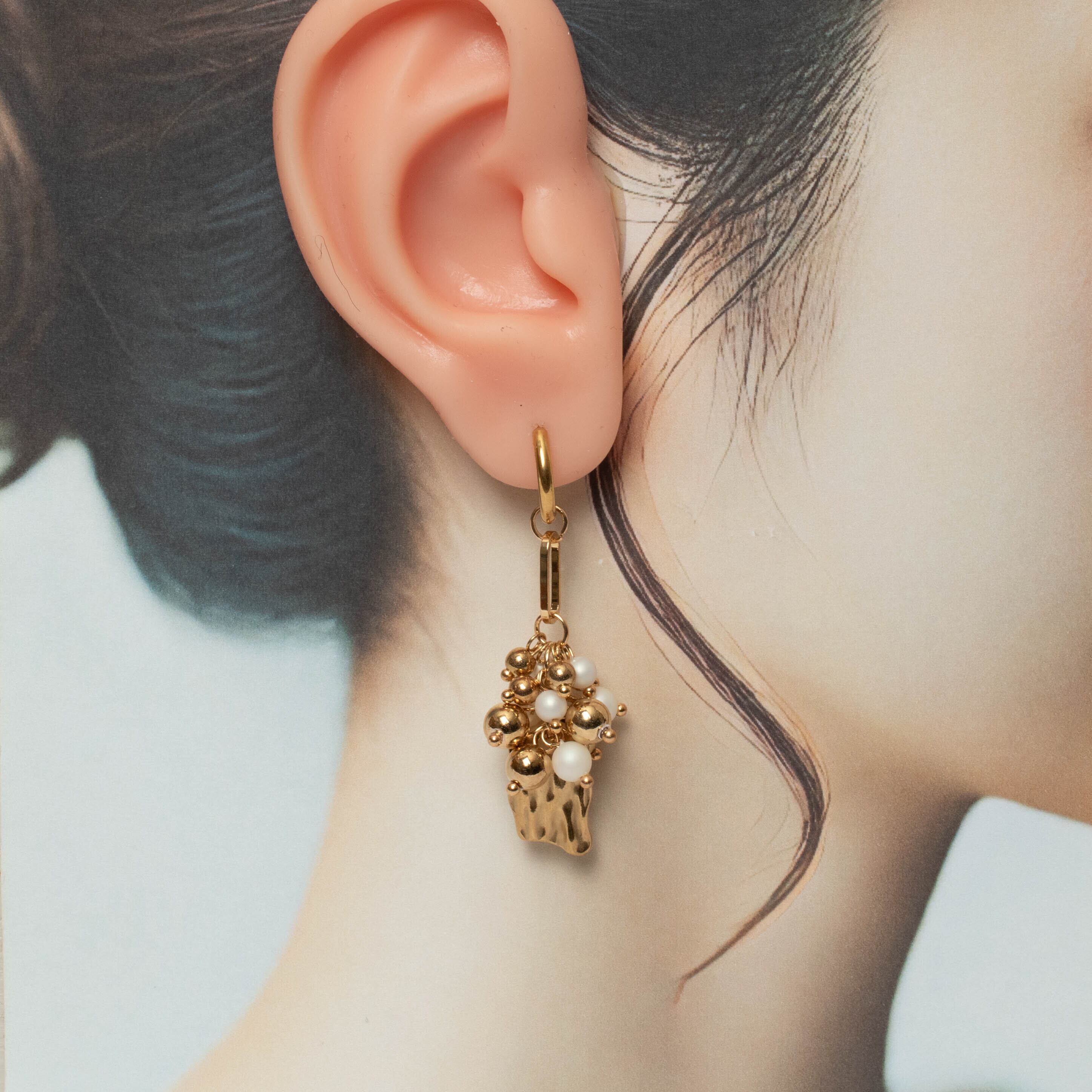 エンボスチャームとパルホワイトビーズの組み合わせが、華やかさと個性を引き立てるピアスです✨