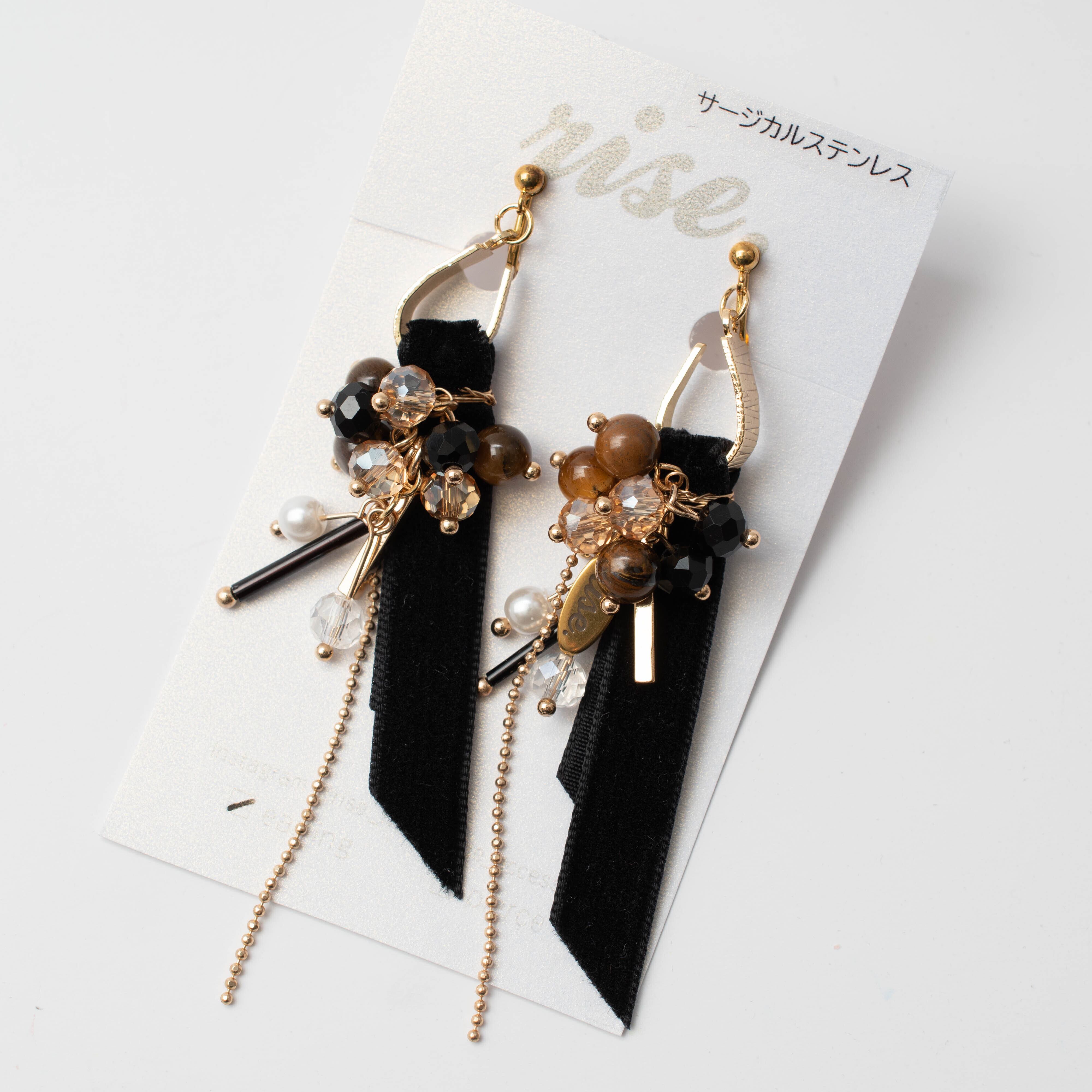 rise._handmade_accessory 様 作品 | No.111 ベルベットリボンタッセル(ブラック)とAutumnカラービーズのイヤリング
