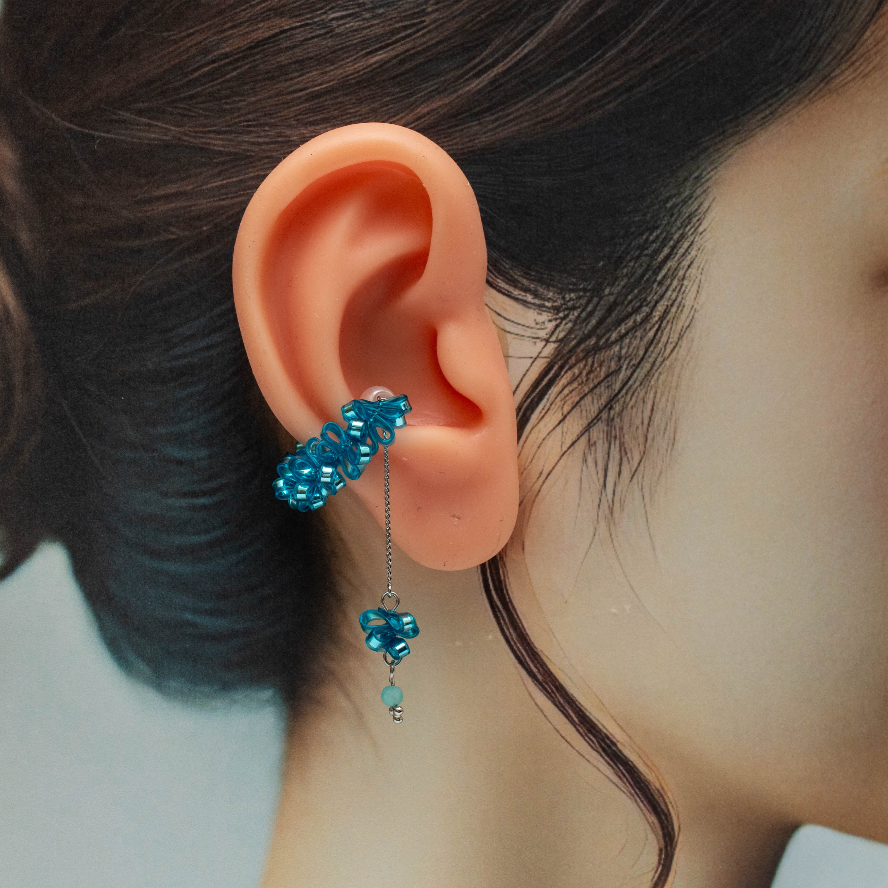 suiii様作品 | No.3 イヤーカフ-spiral- スカイブルー/チャーム付き
