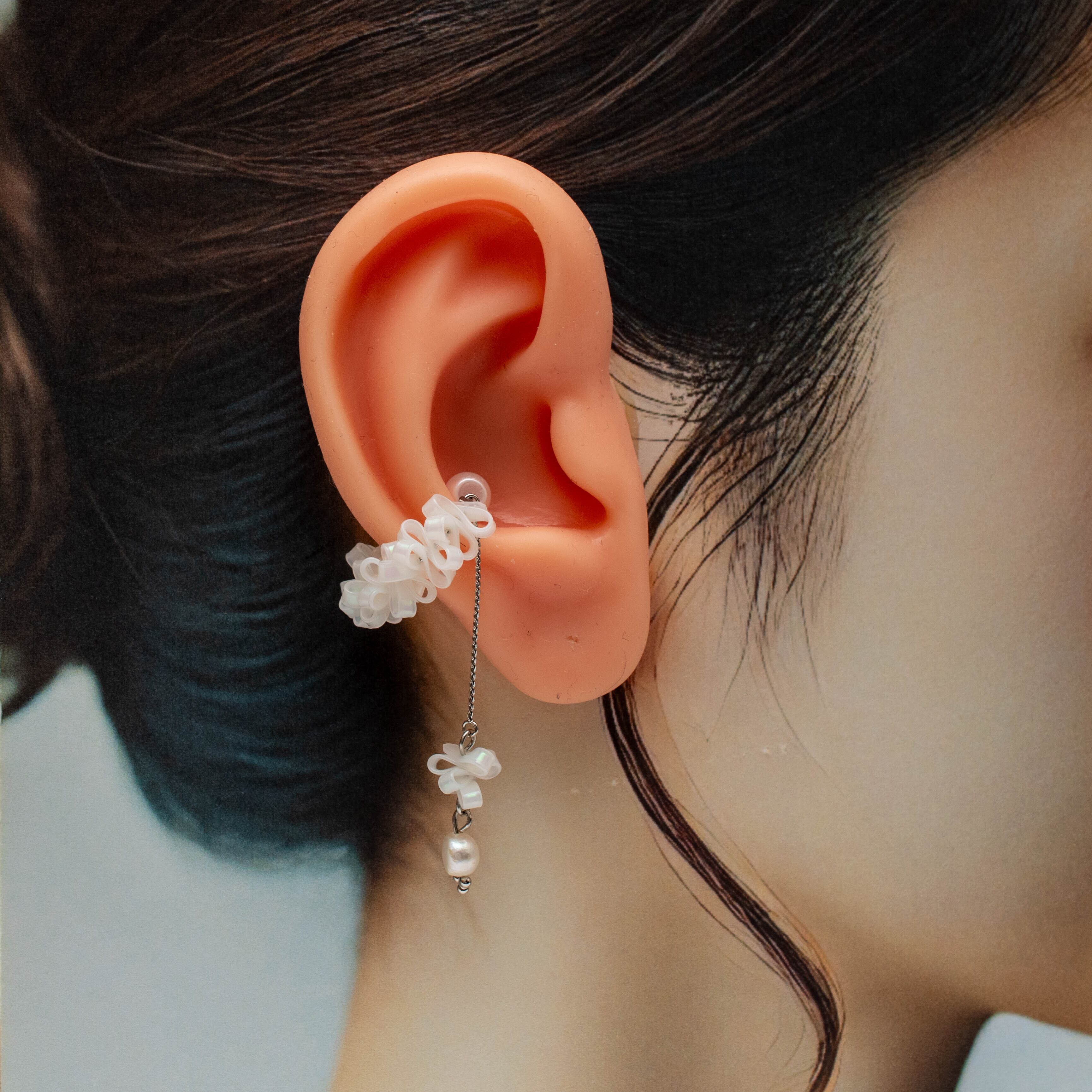 suiii様作品 | No.9 イヤーカフ-spiral- オーロラホワイト/チャーム付き