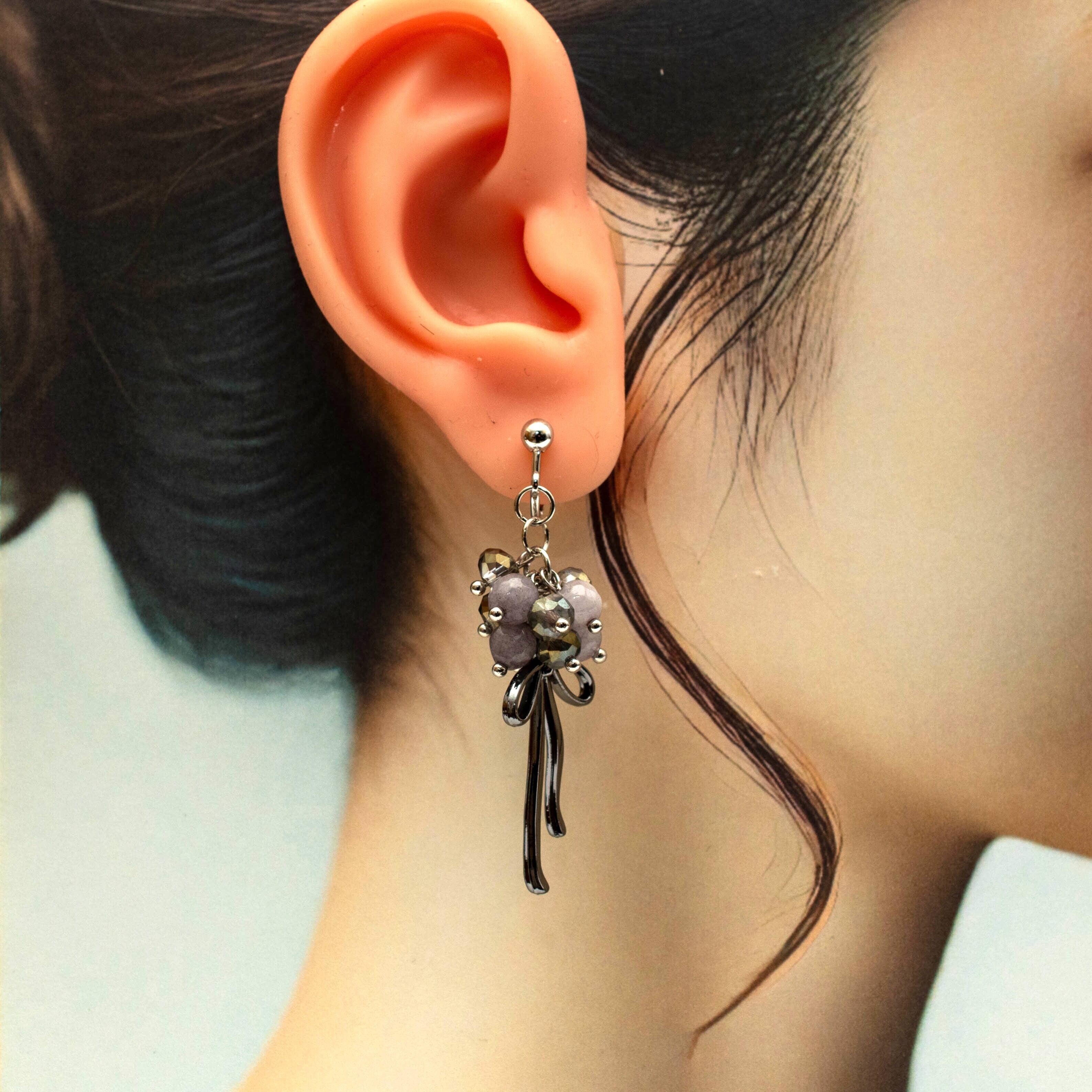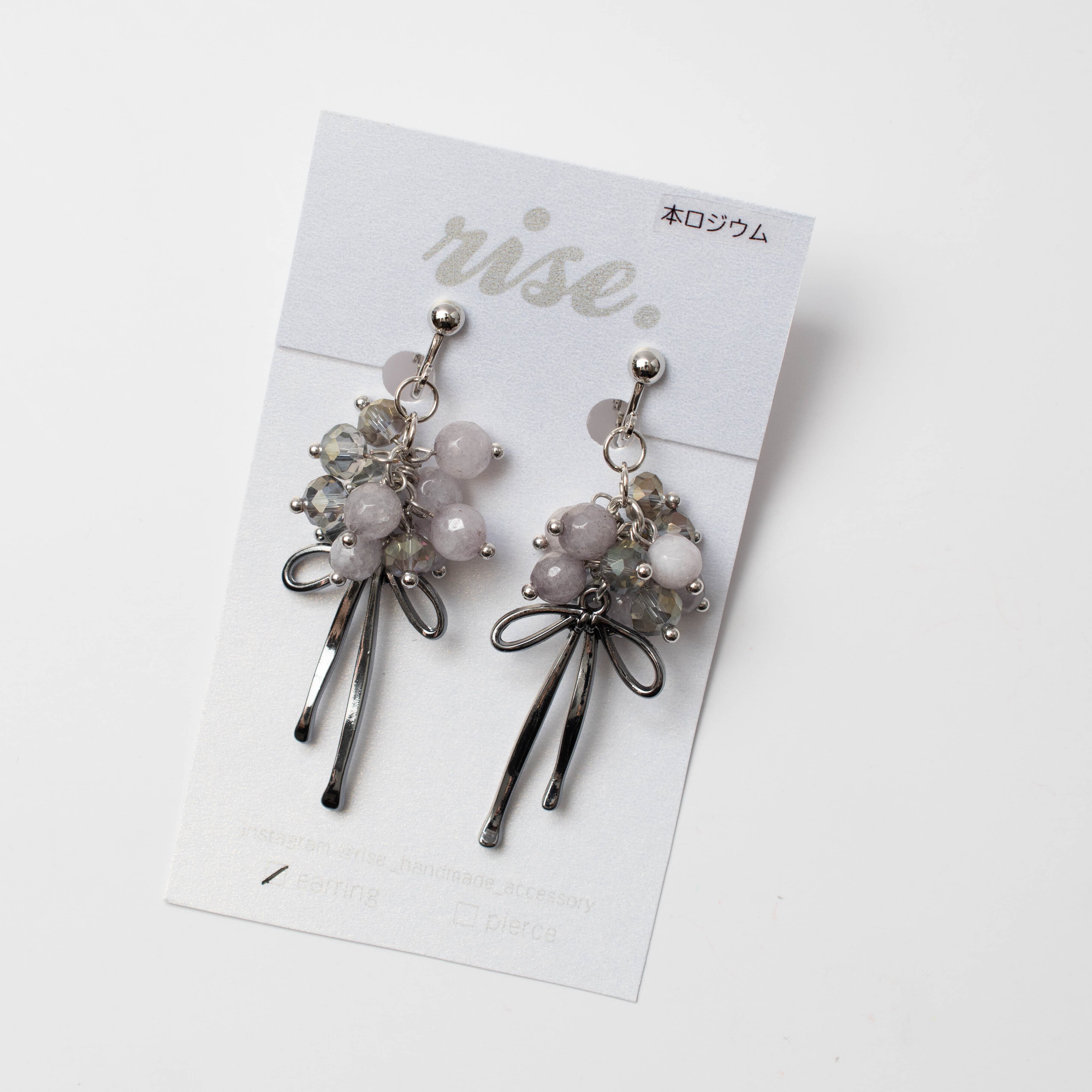 rise._handmade_accessory 様 作品 | No.114 グレークォーツとグレーガラスのがんめたリボンイヤリング