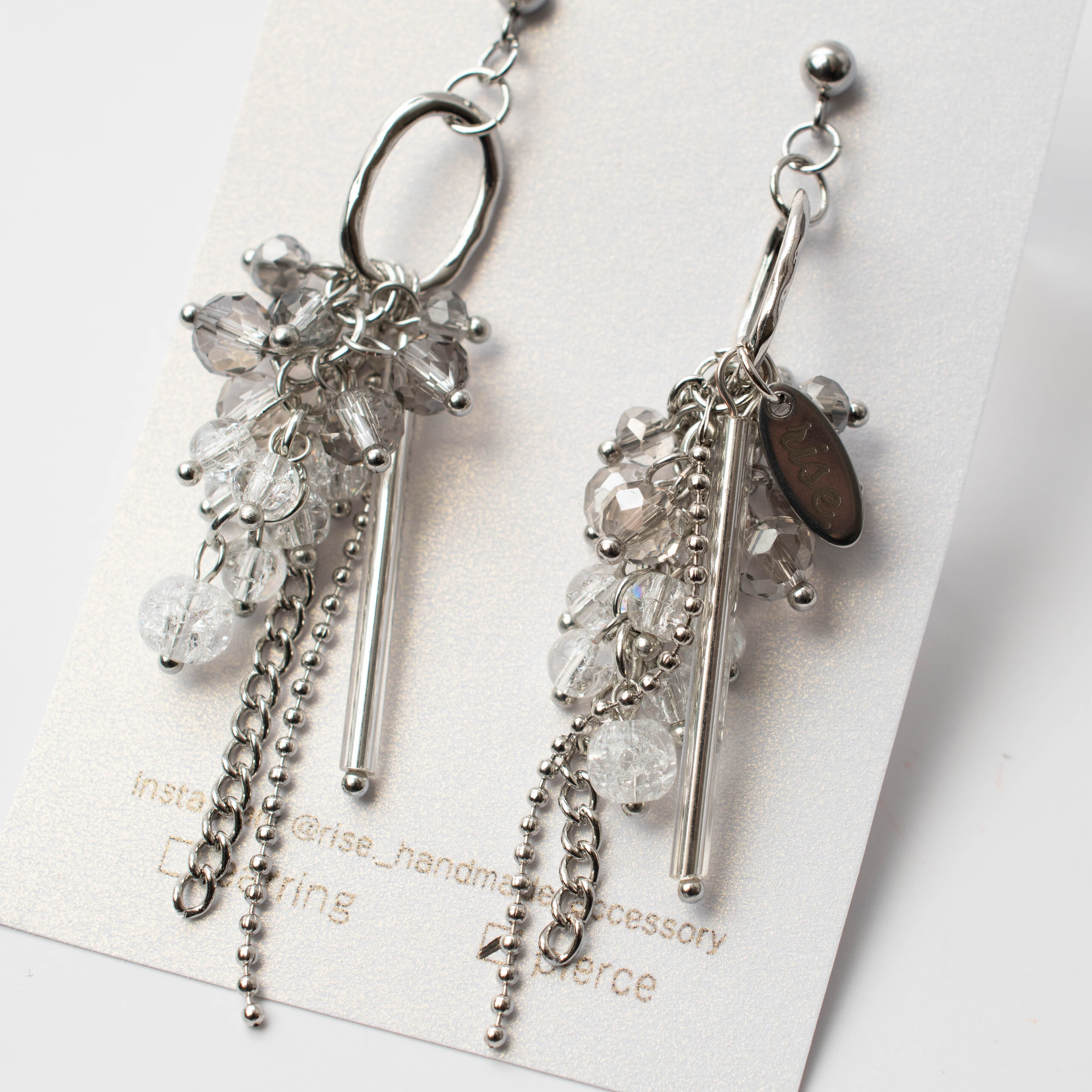 rise._handmade_accessory 様 作品 | No.115 合成クラッククォーツと多面カットガラスのピアス