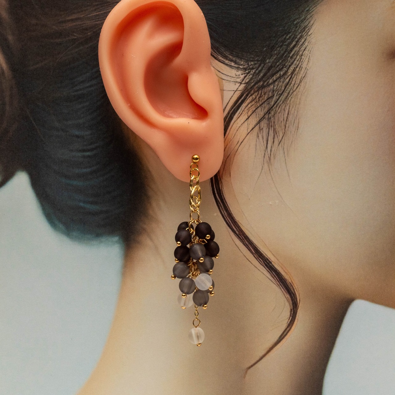 rise._handmade_accessory 様 作品 | No.133 フロストビーズ(ブラック)のたらりんピアス