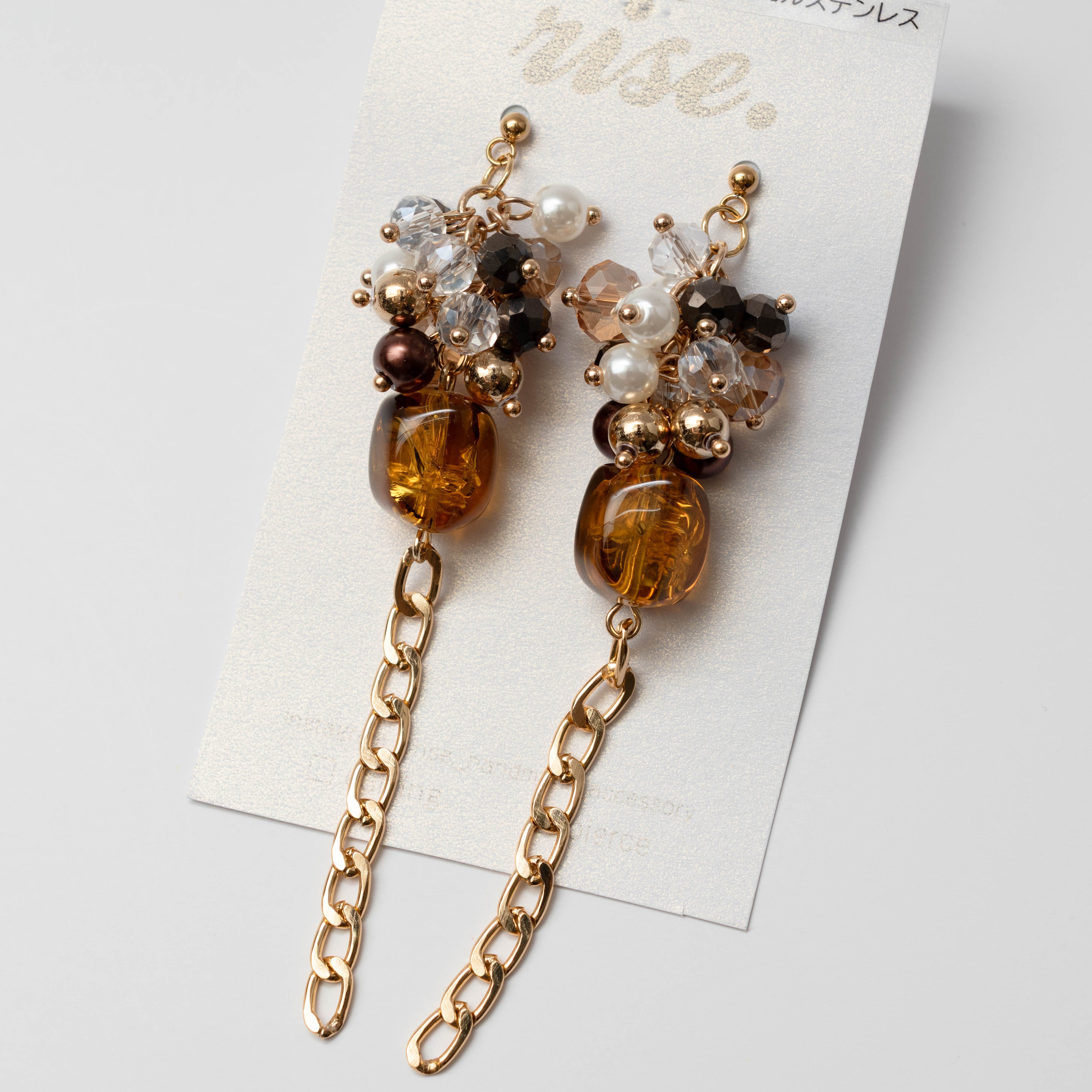 rise._handmade_accessory 様 作品 | No.130 パールじゃらとべっ甲飴風ビーズのピアス