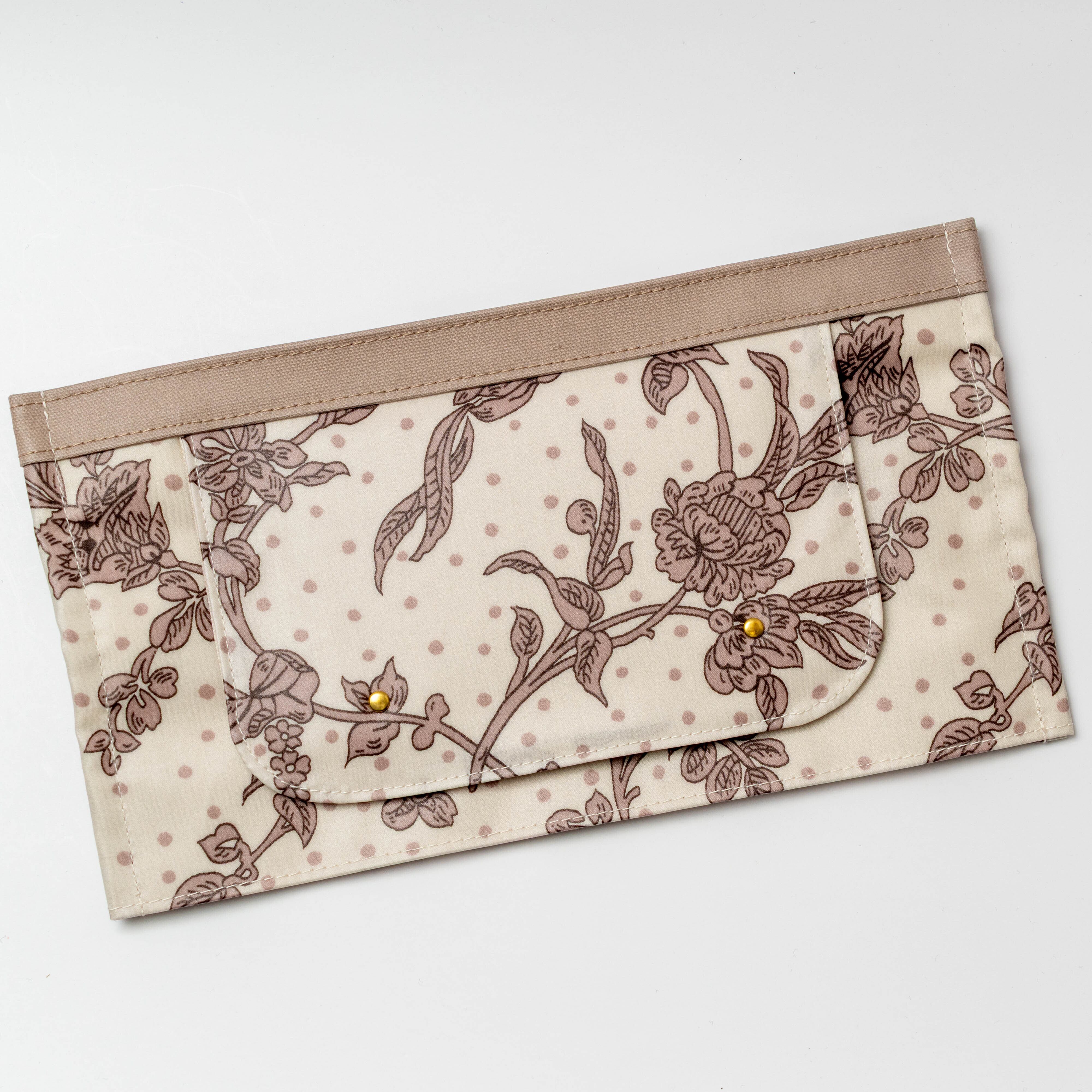 ラミネート生地を使用したこのおしりふきケースは、さっとふき取るだけで簡単にお手入れでき、お出かけ時にも大活躍です。