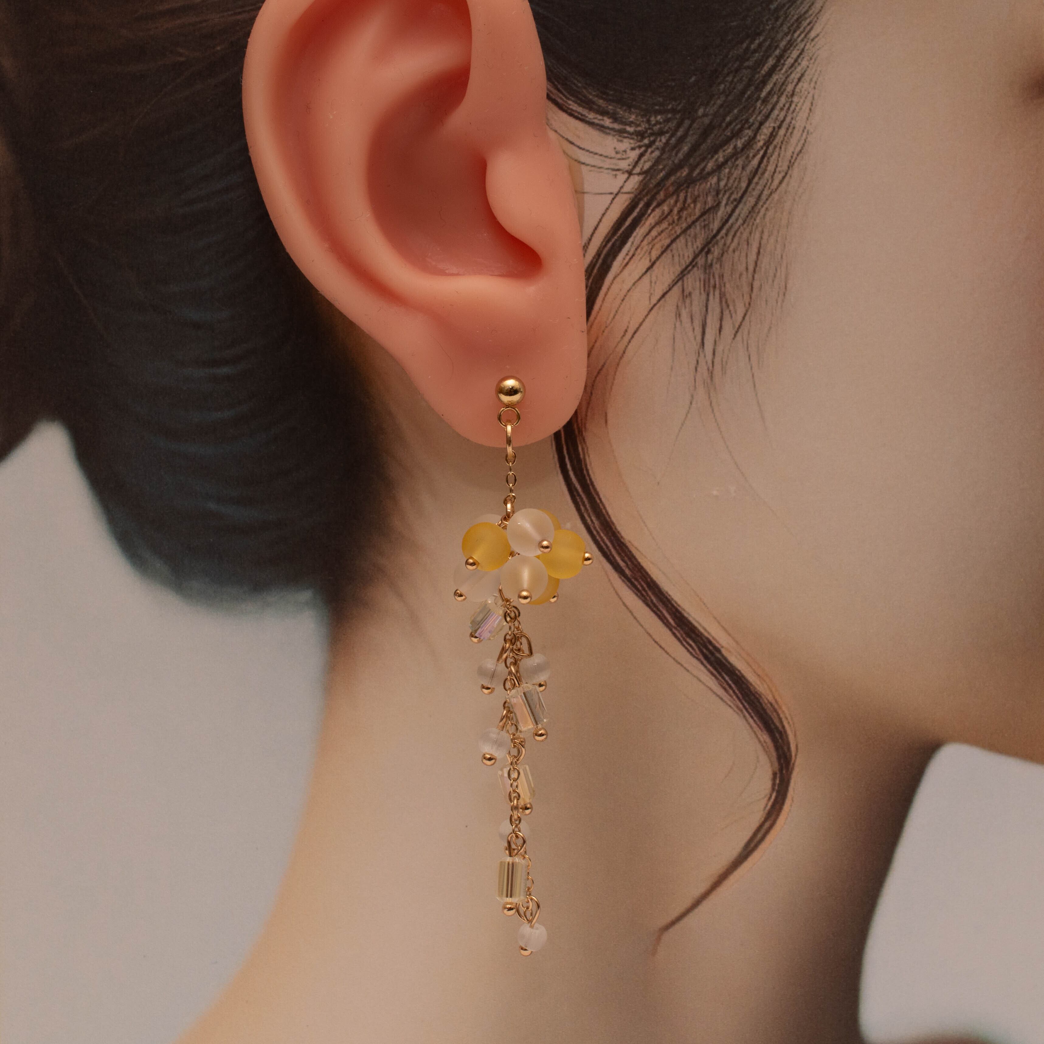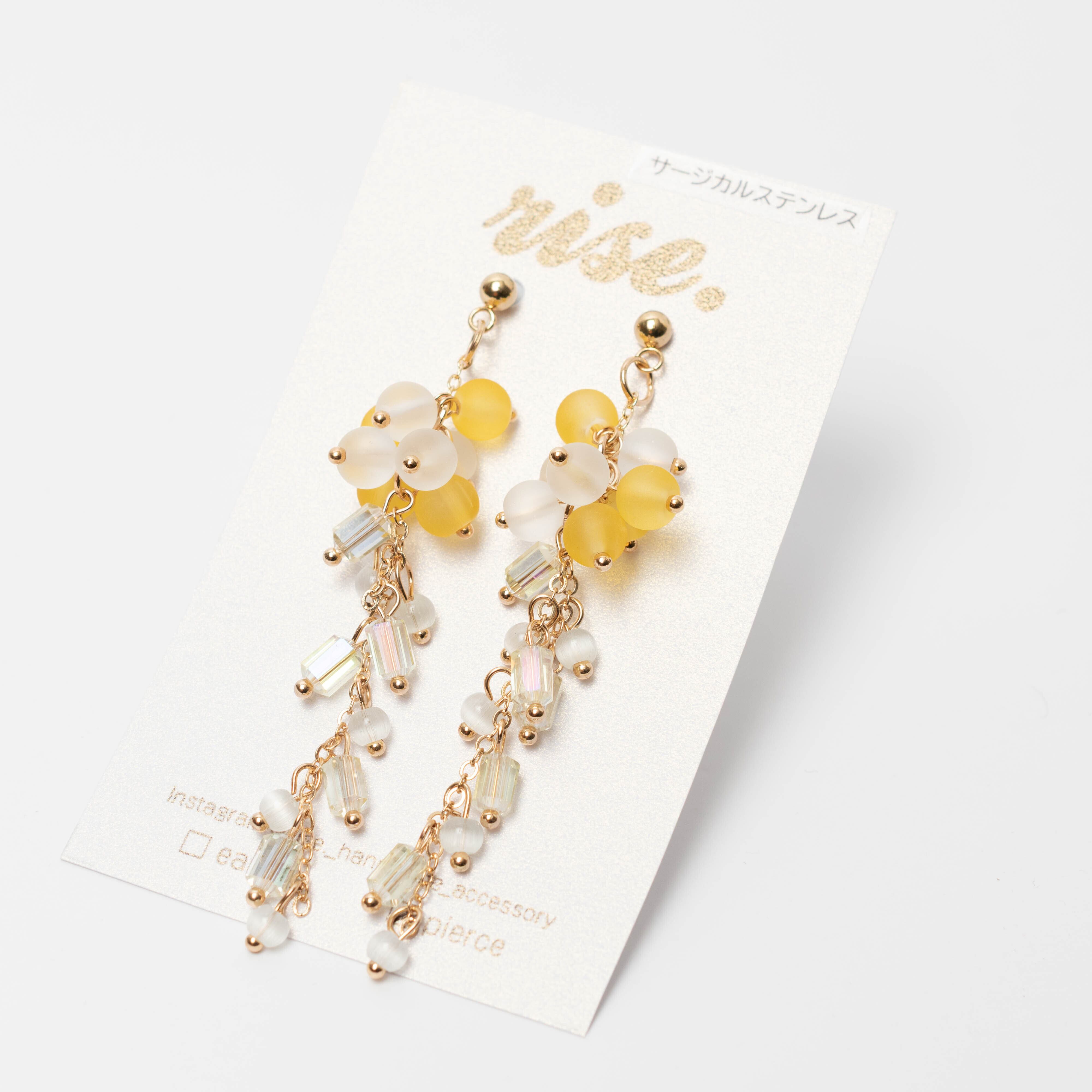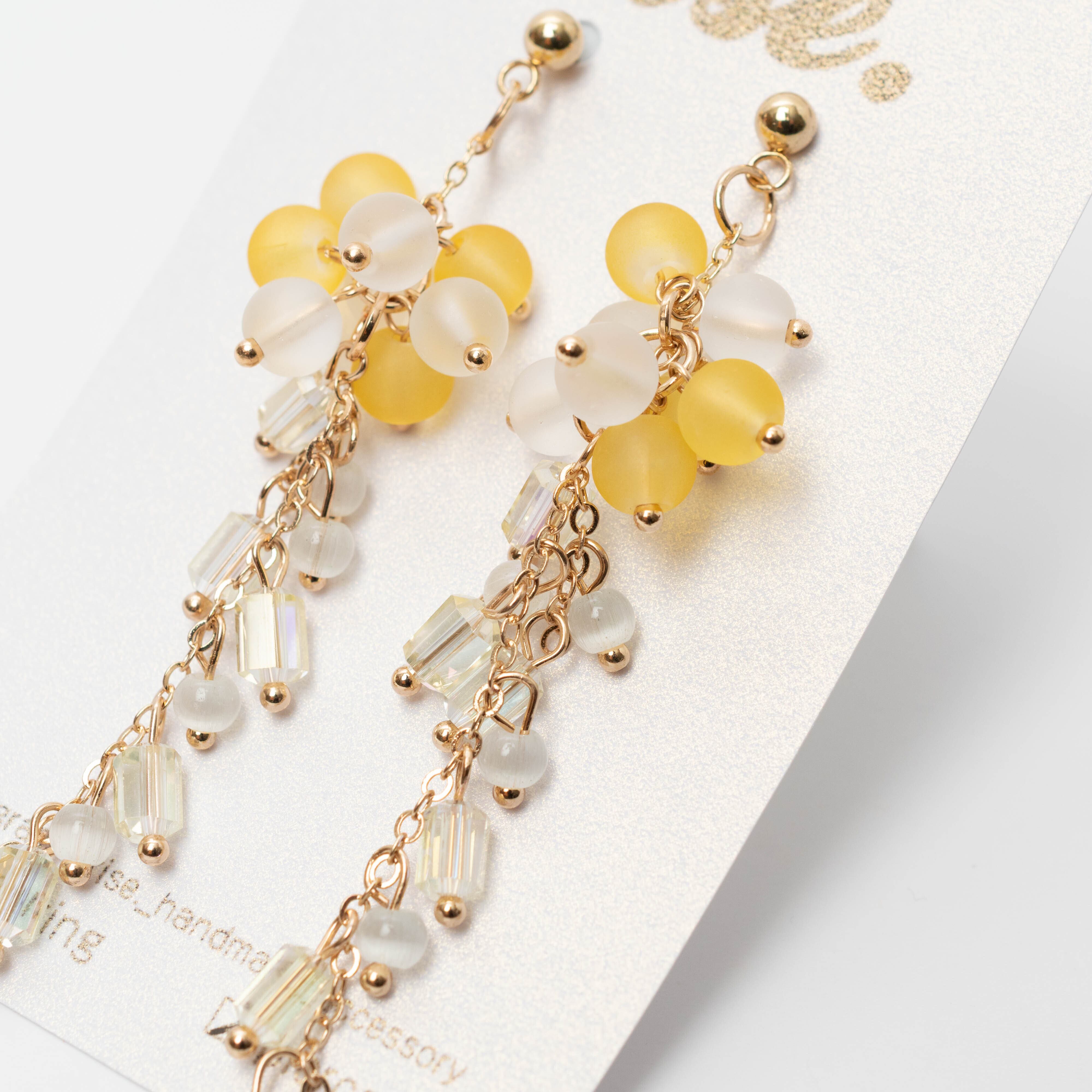 rise._handmade_accessory 様 作品 | No.137 フロストビーズ(ホワイト&イエロー)と多面カット円柱ガラスのピアス