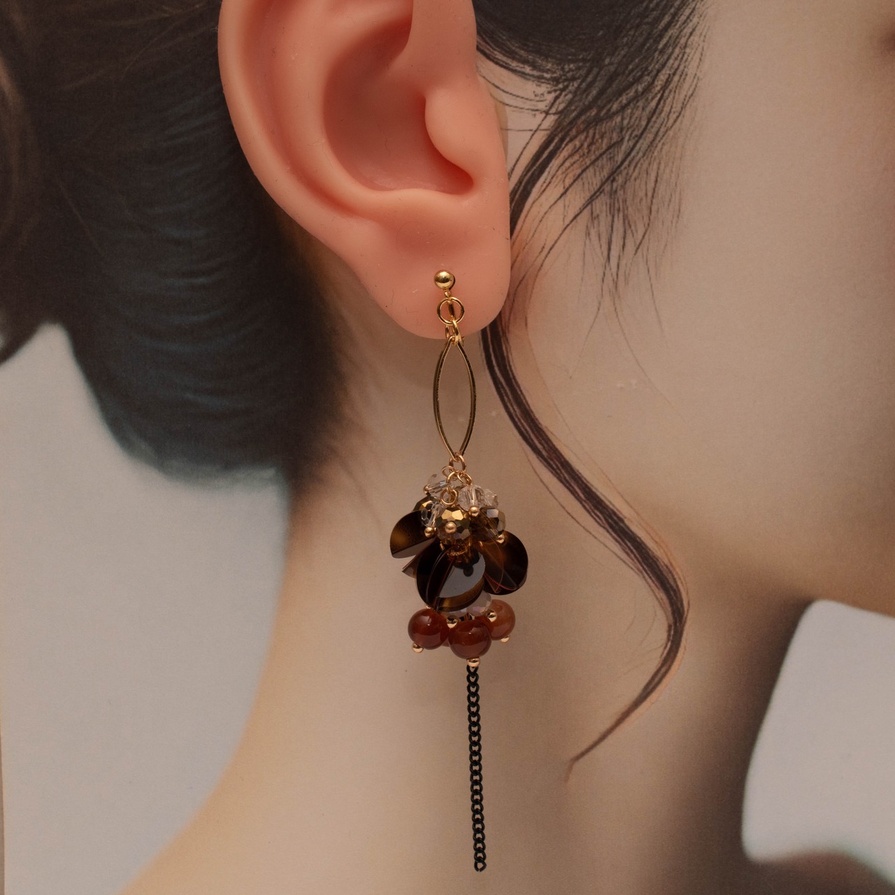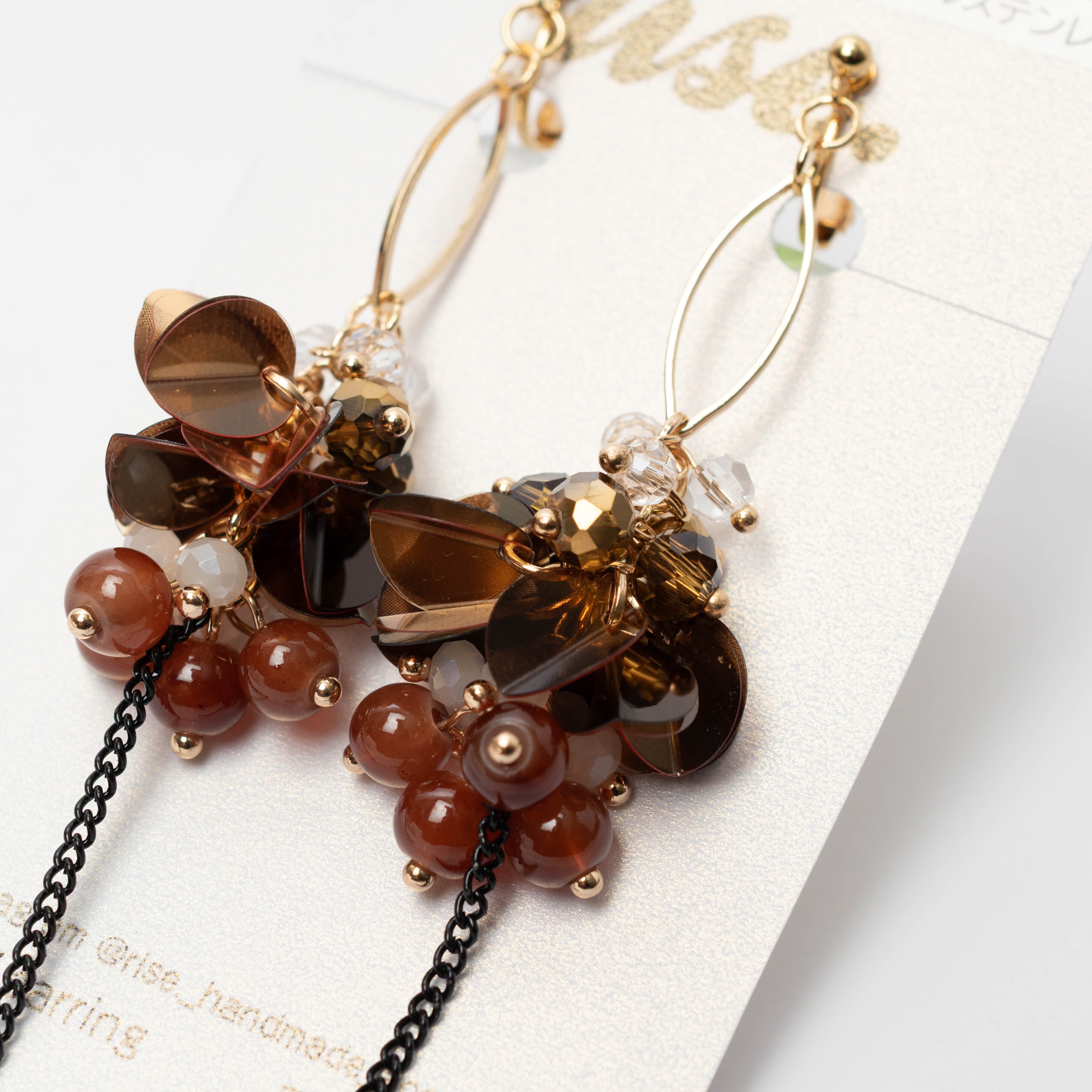 rise._handmade_accessory 様 作品 | No.140 2色スパンコールとオレンジブラウンのブラックチェーンイヤリング