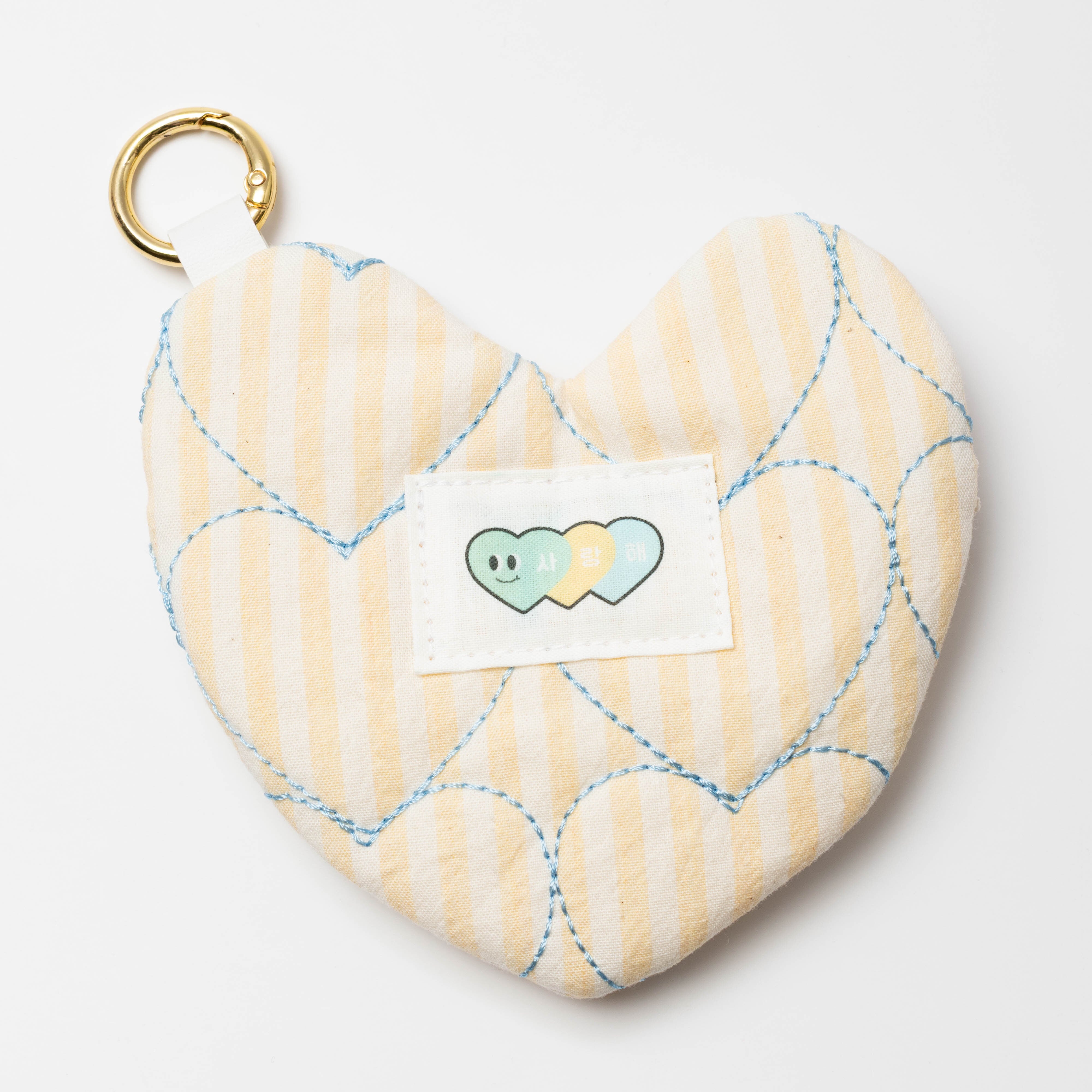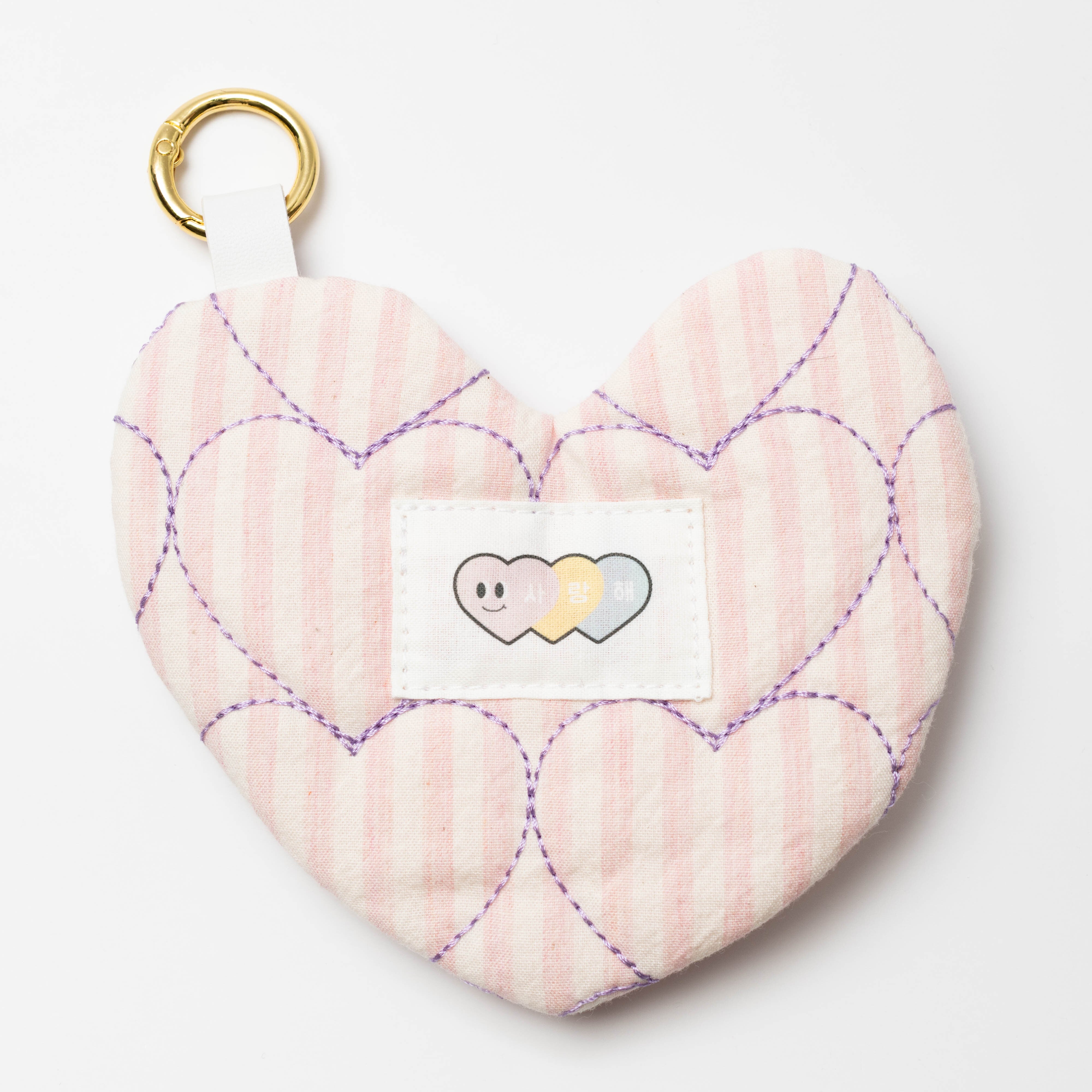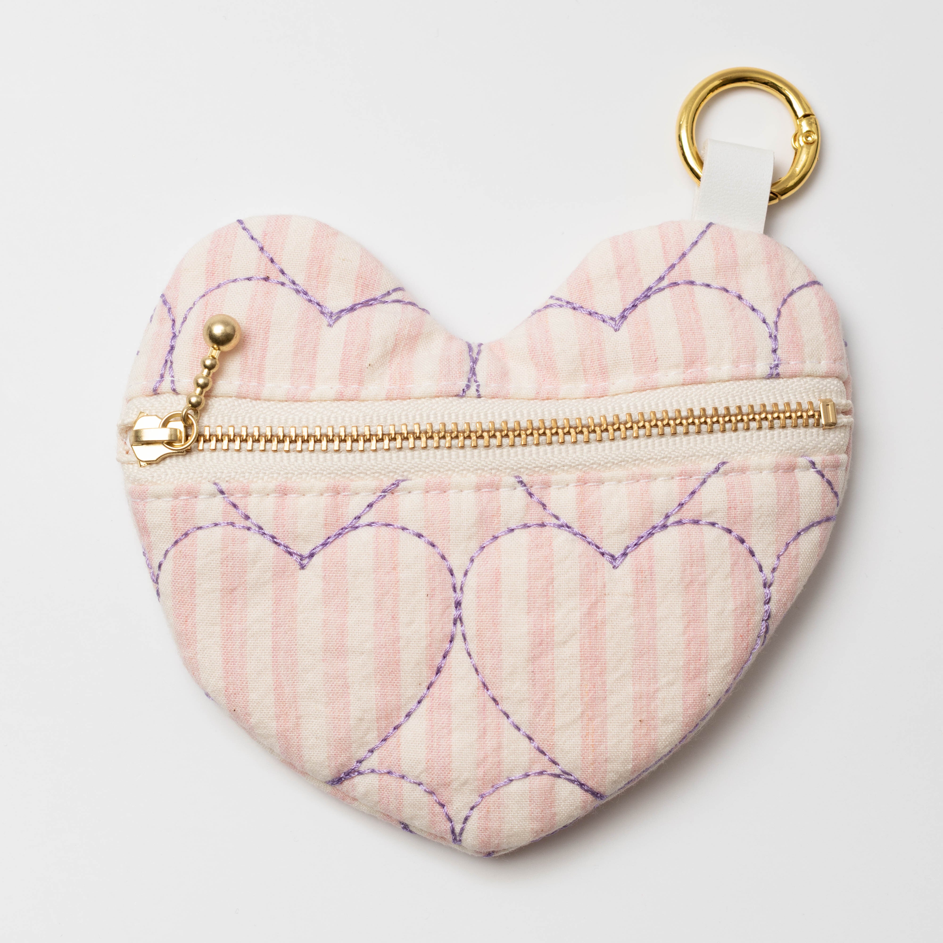 韓国生地を使用したハート型のカラビナ付きフラットポーチです。