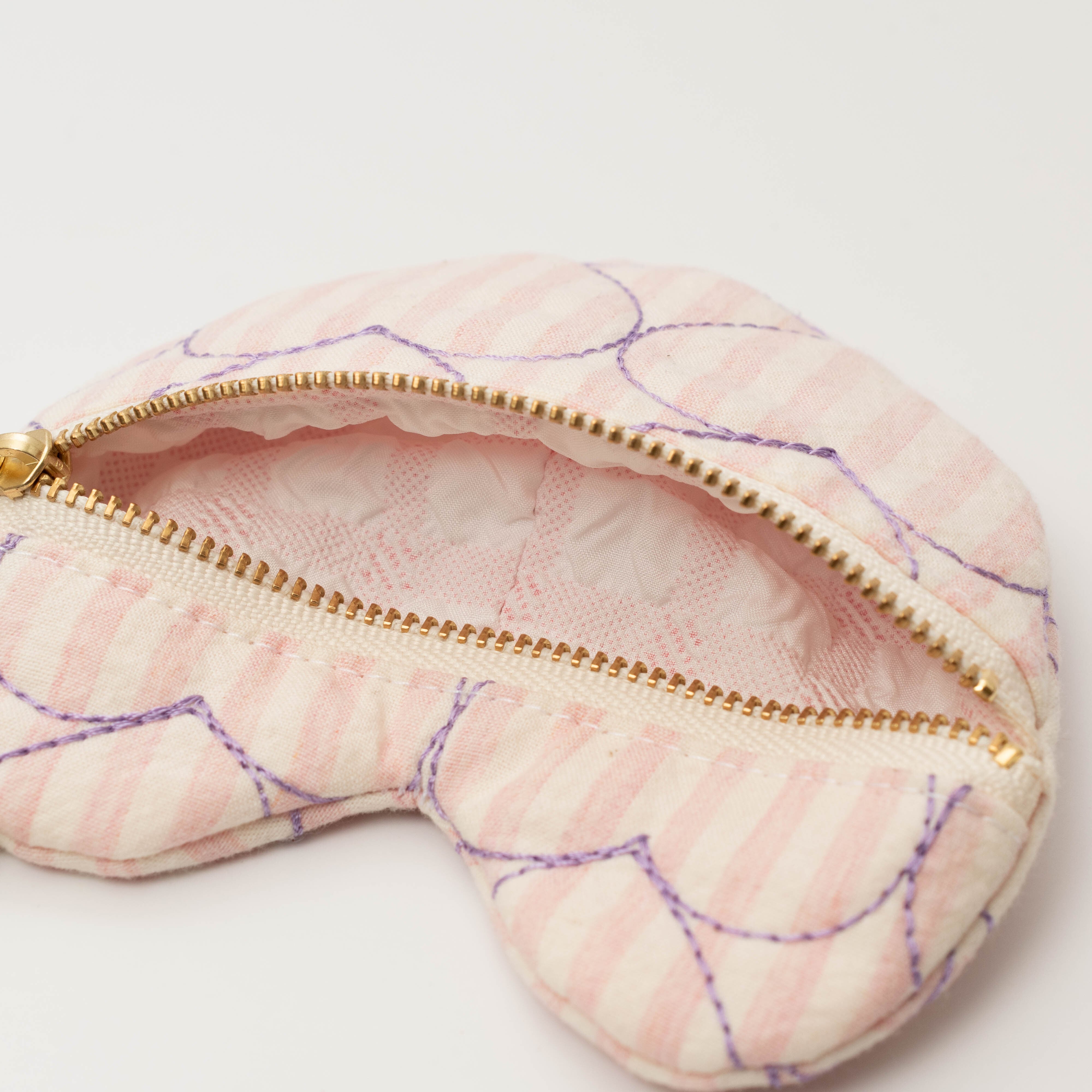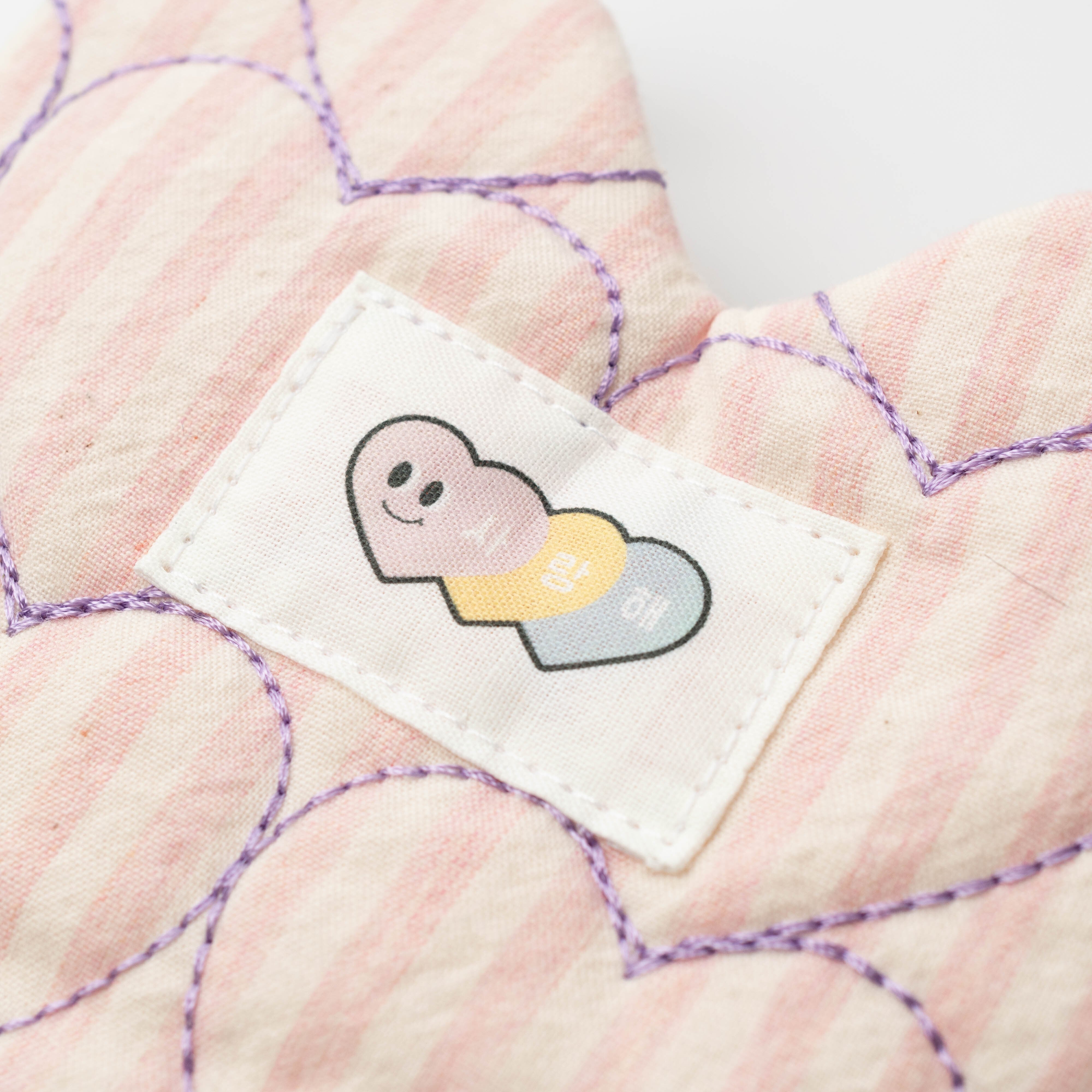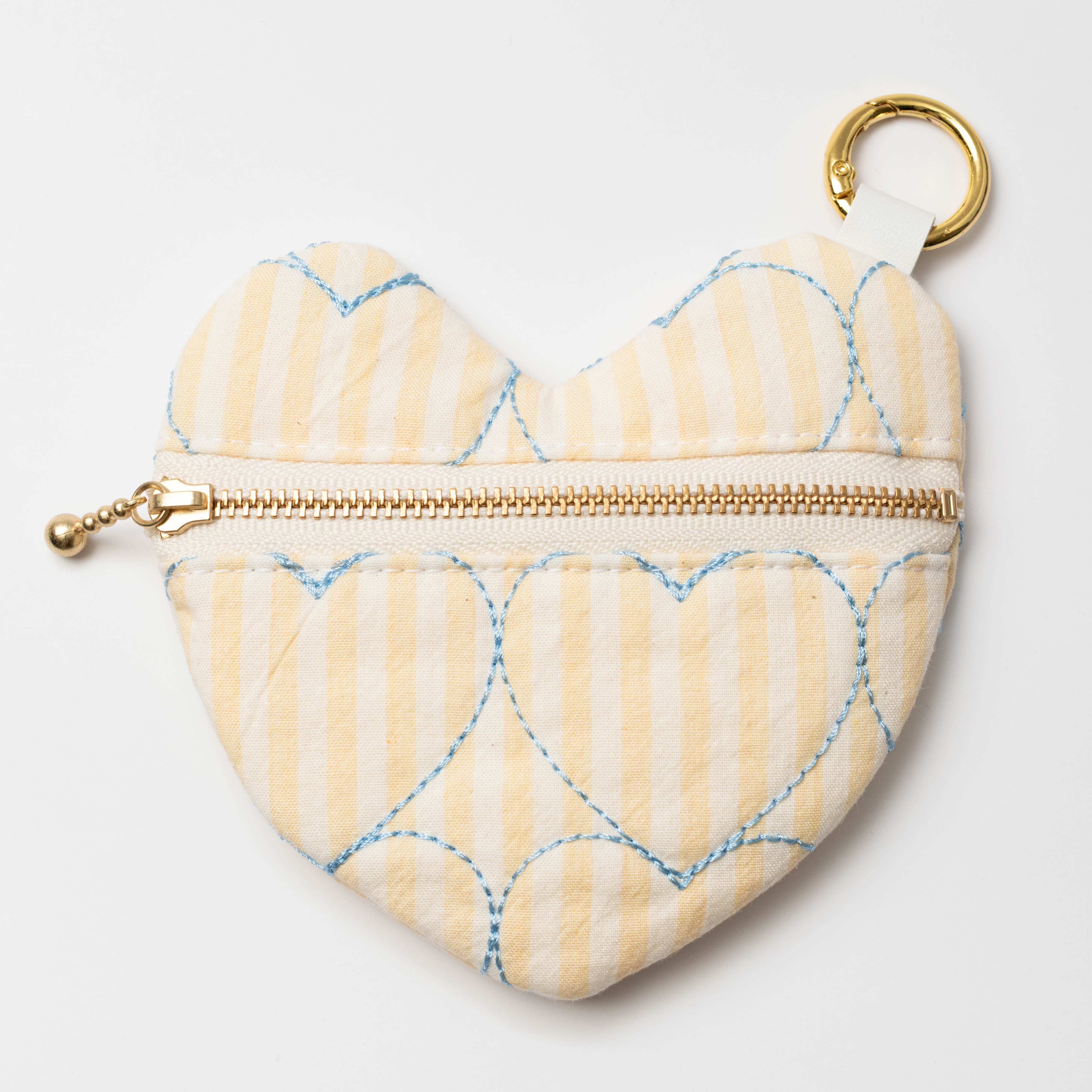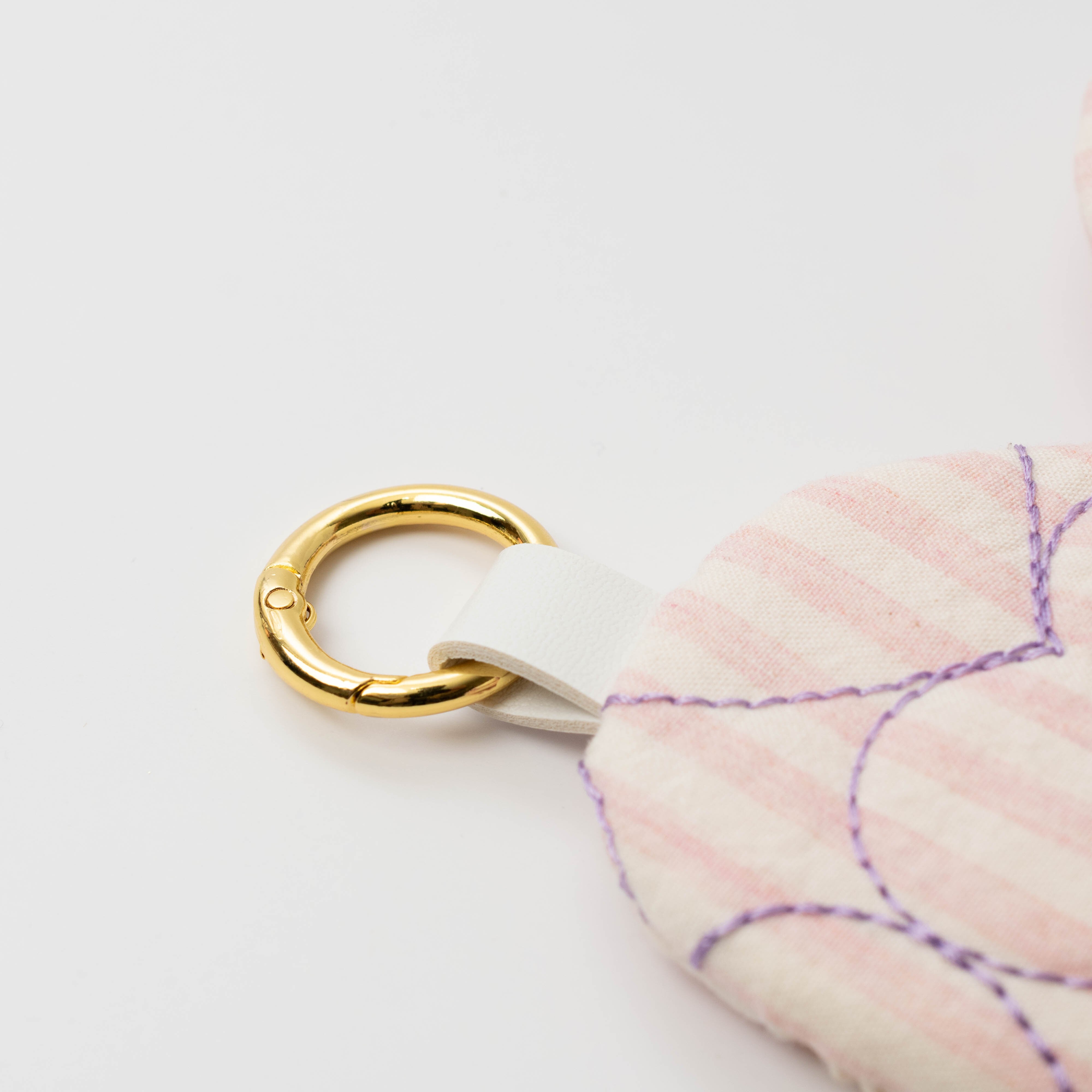 韓国生地を使用したハート型のカラビナ付きフラットポーチです。