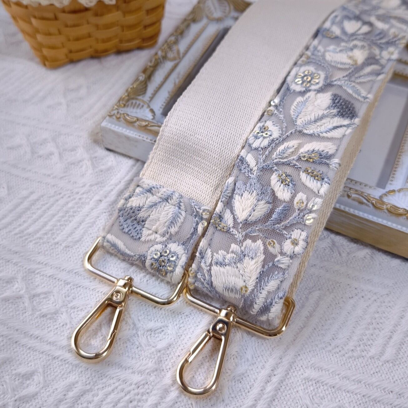 海外のリボンのため、多少の刺繍ミスやヨレ・スパンコールの抜け・継ぎ目・糸のほつれがある場合があります。