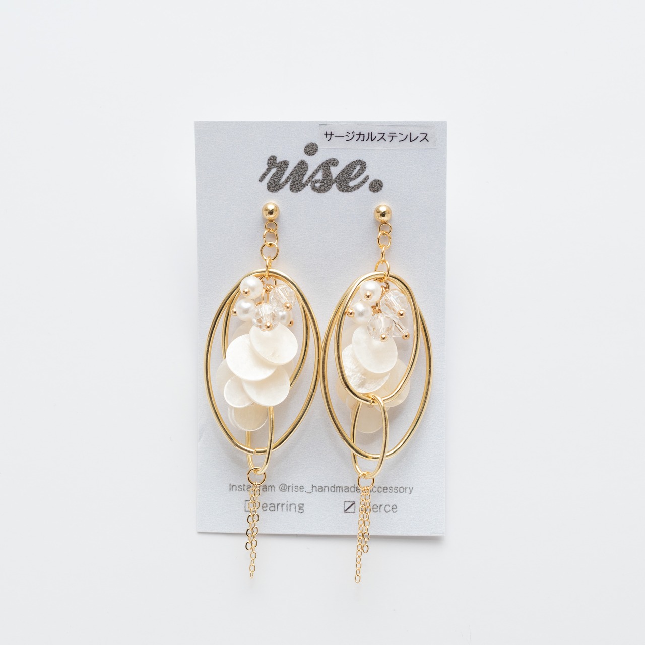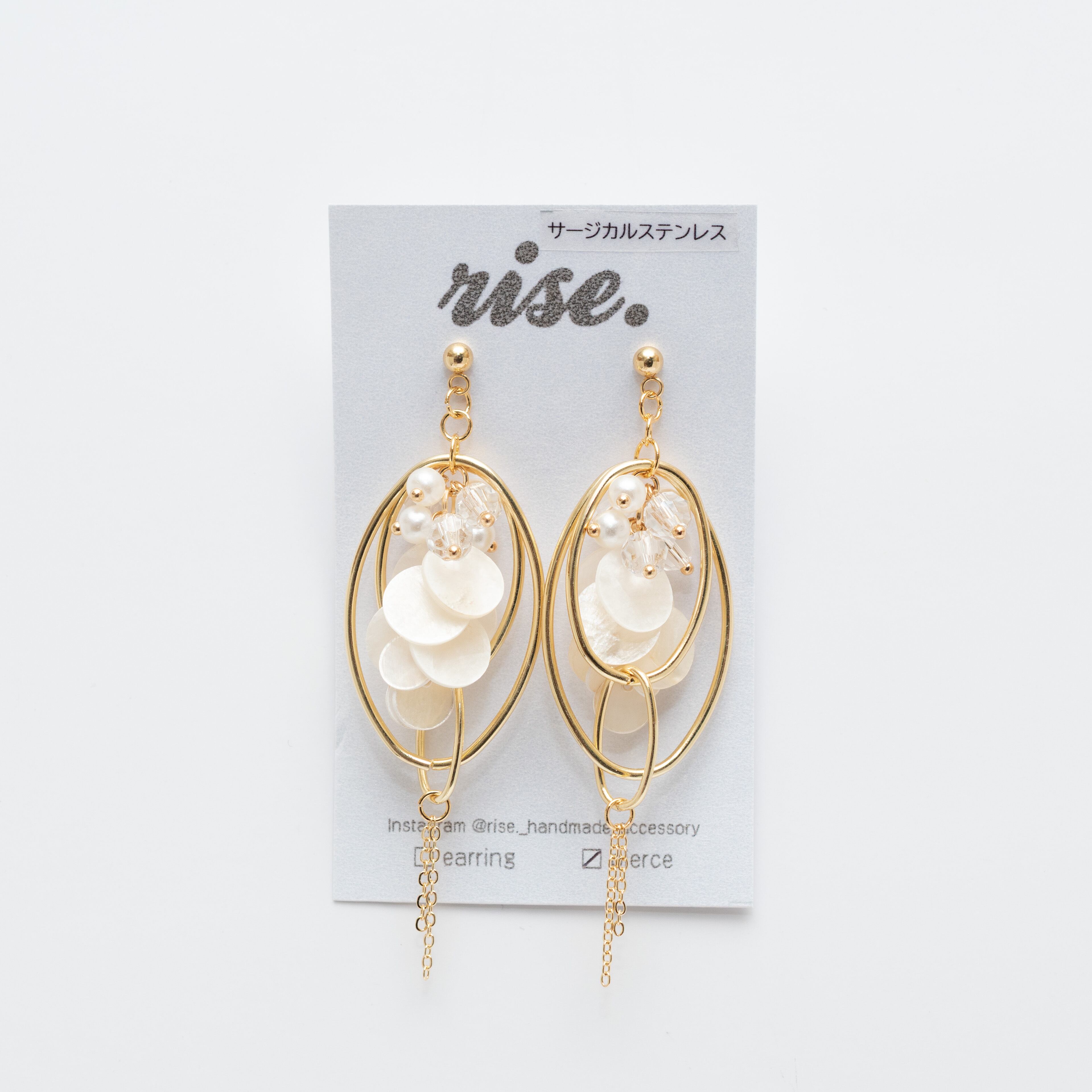 rise._handmade_accessory 様 作品 | No.188 ゴールド3連フープと天然シェルのピアス