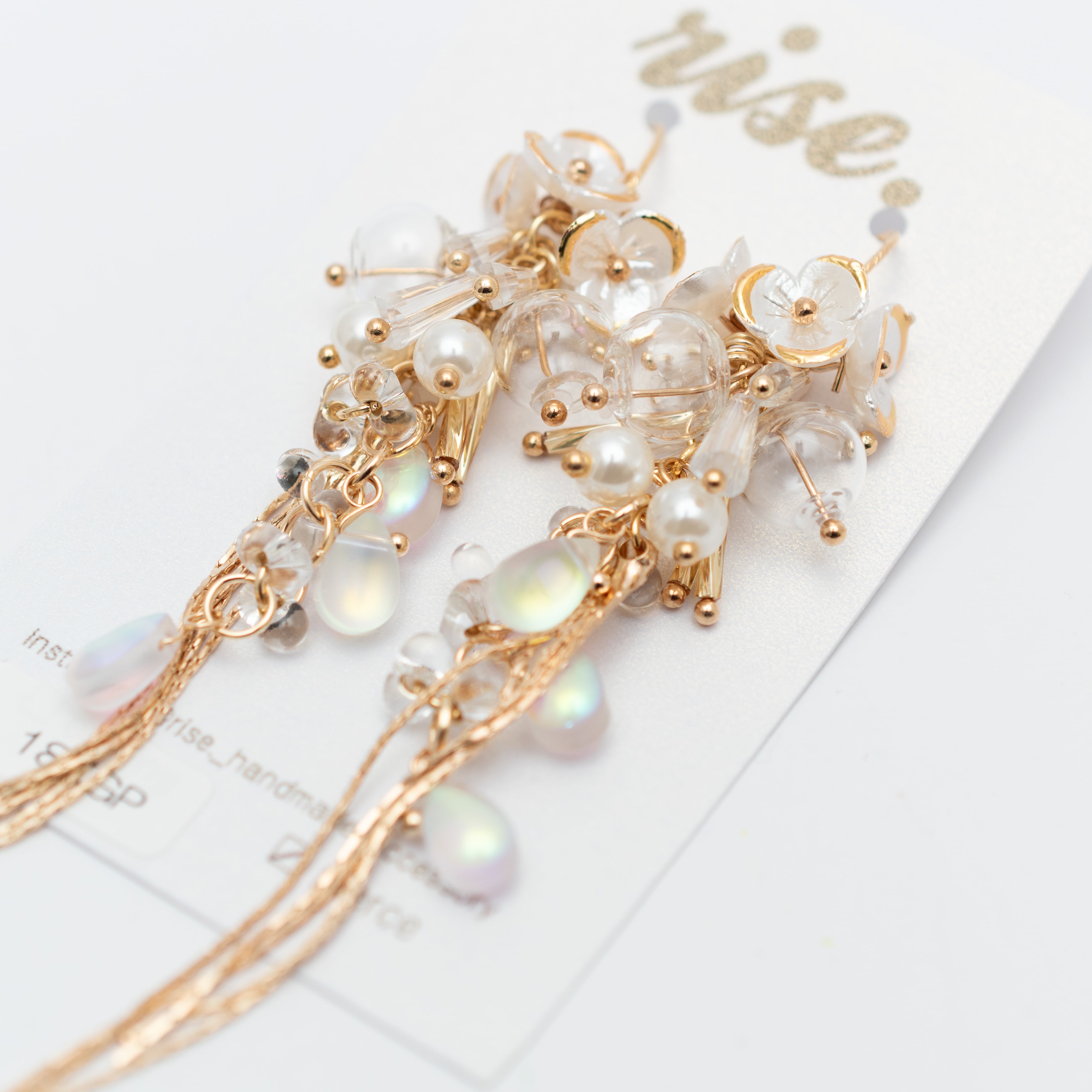 rise._handmade_accessory 様 作品 | No.189 ミニ空洞ビーズとオーロラフロストドロップビーズのピアス