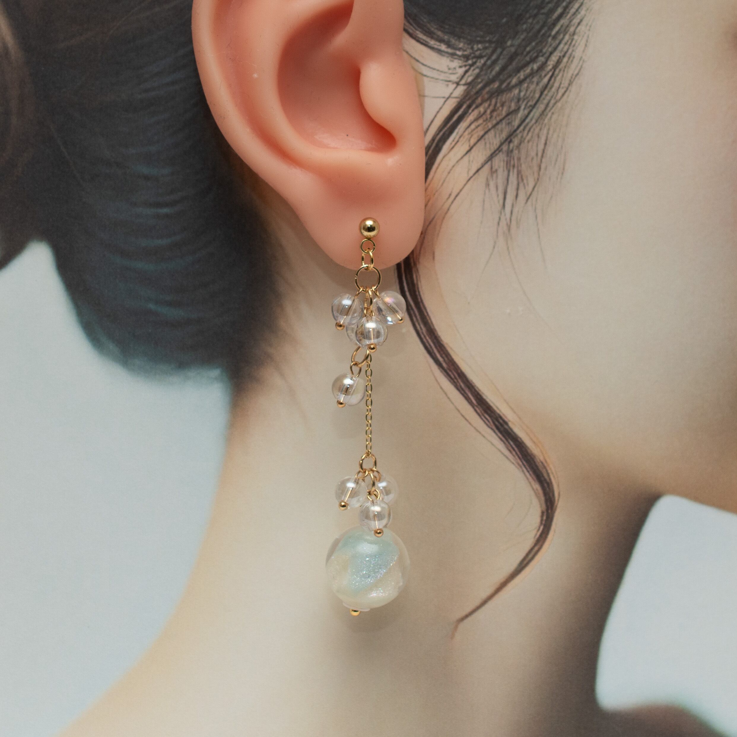 rise._handmade_accessory 様 作品 | No.192 14ミリ大玉ビーズのアシンメトリーピアス(ブルー)