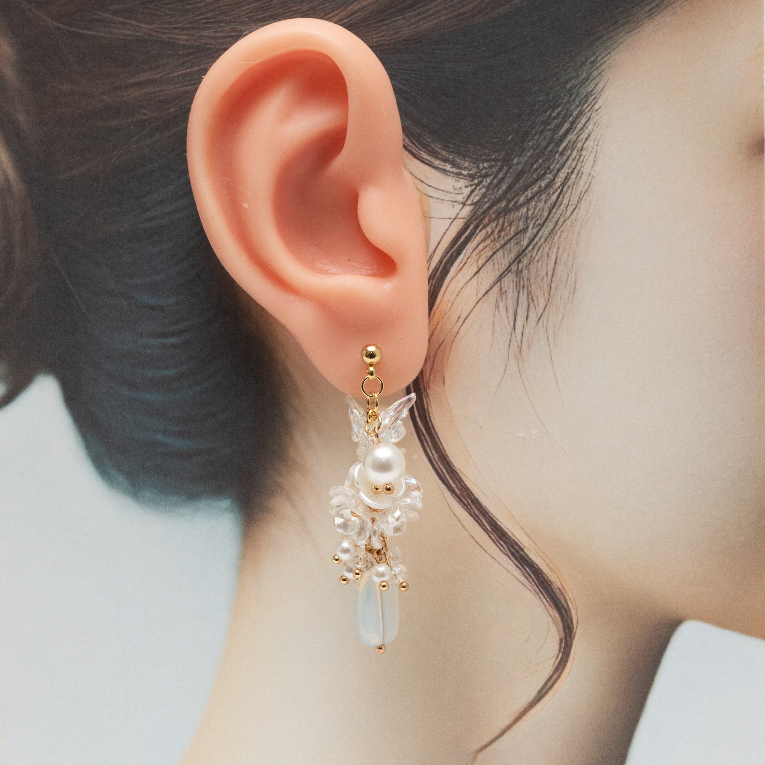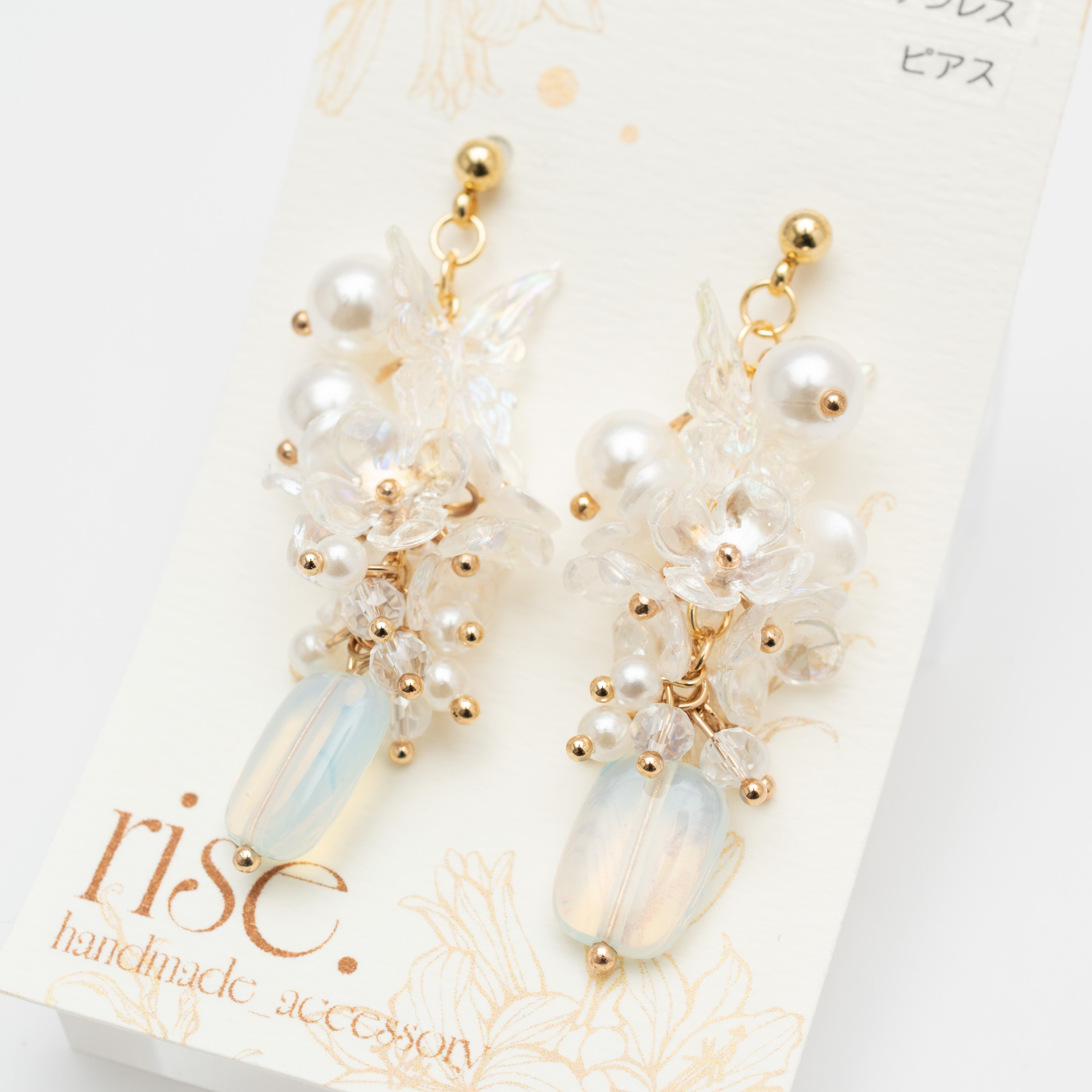 rise._handmade_accessory 様 作品 | No.202 クリアオーロラ蝶々ビーズとオパライトのピアス