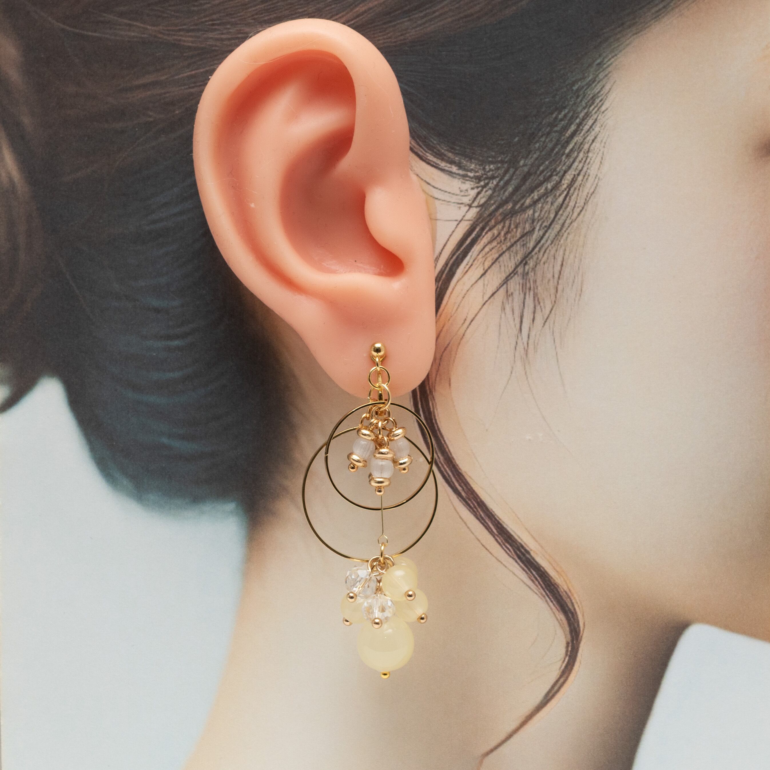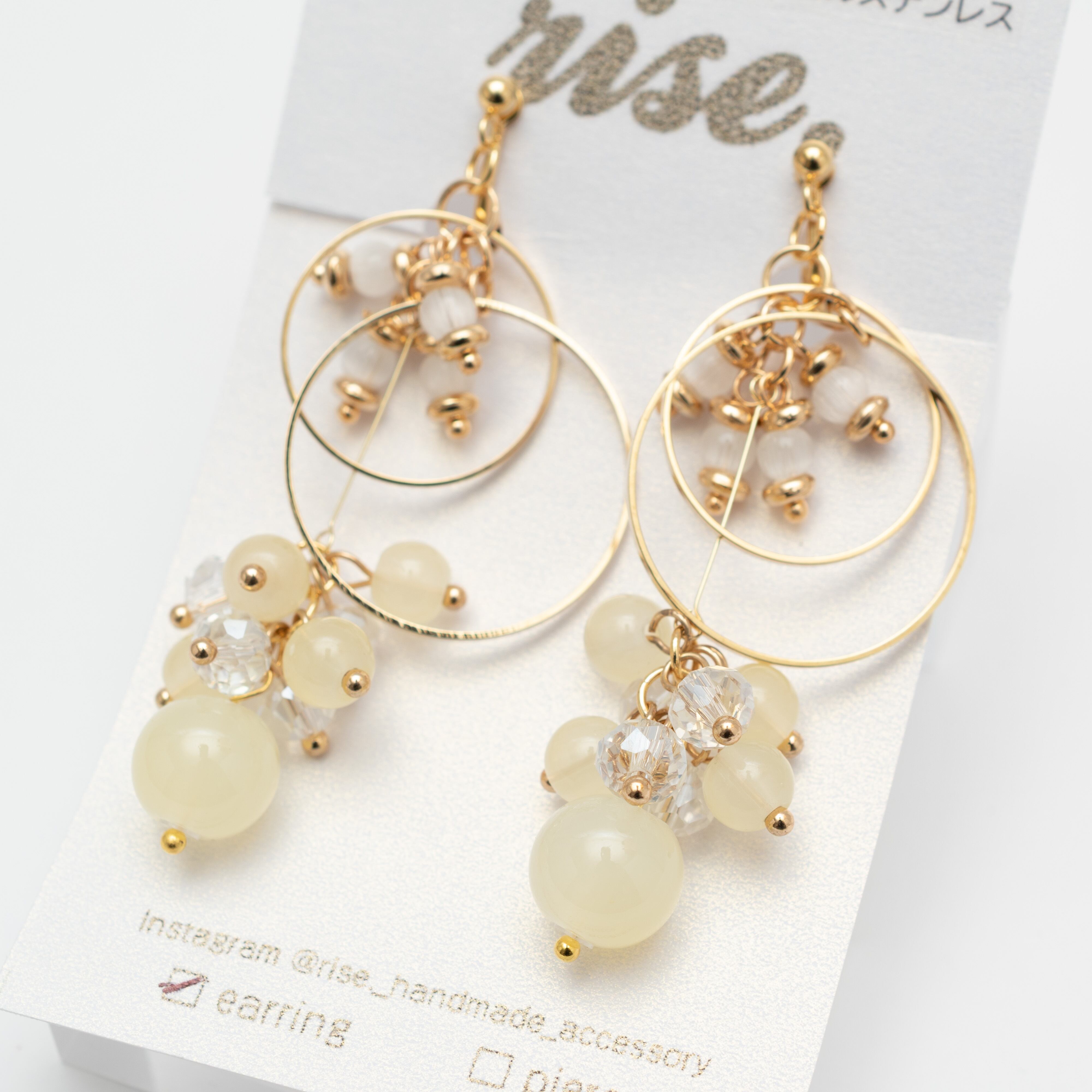 rise._handmade_accessory 様 作品 | No.206 2連フープとイエローガラスビーズのイヤリング