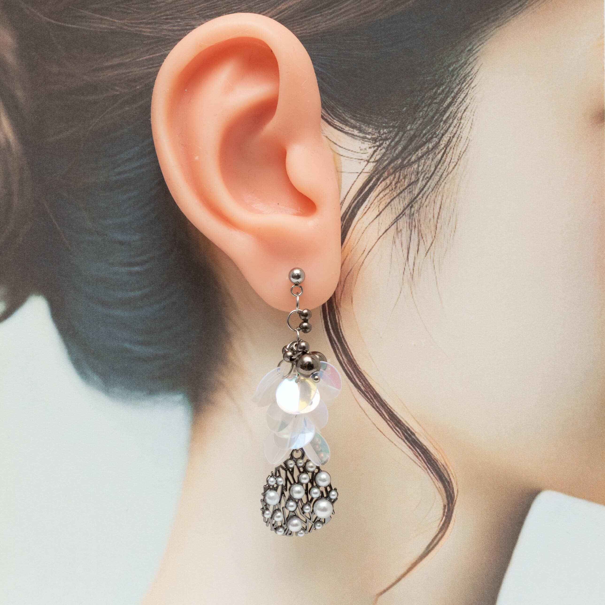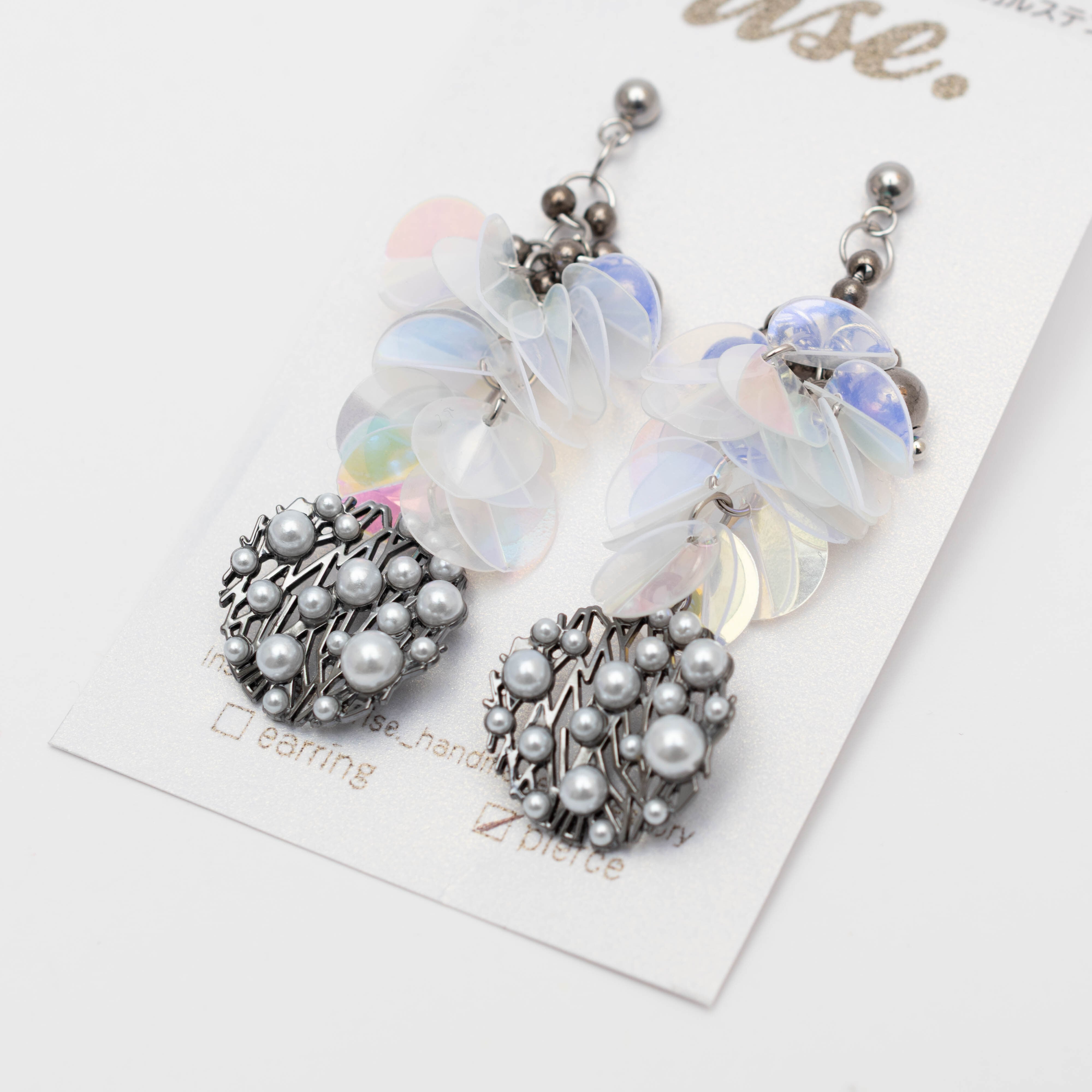 rise._handmade_accessory 様 作品 | No.210 シルバー&オーロラスパンコールと湾曲パールプレートのピアス