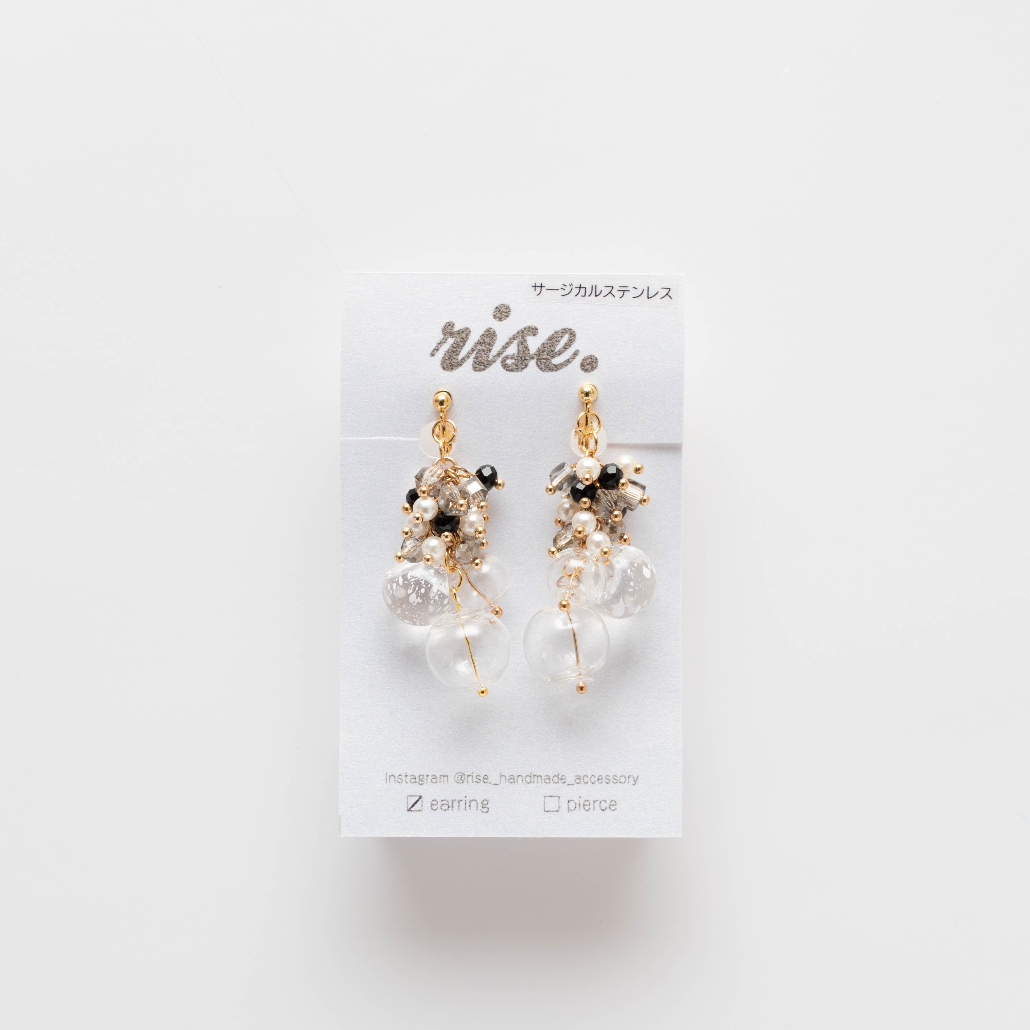 rise._handmade_accessory 様 作品 | No.213 ホワイトペイント鈴丸と空洞ガラスビーズのイヤリング