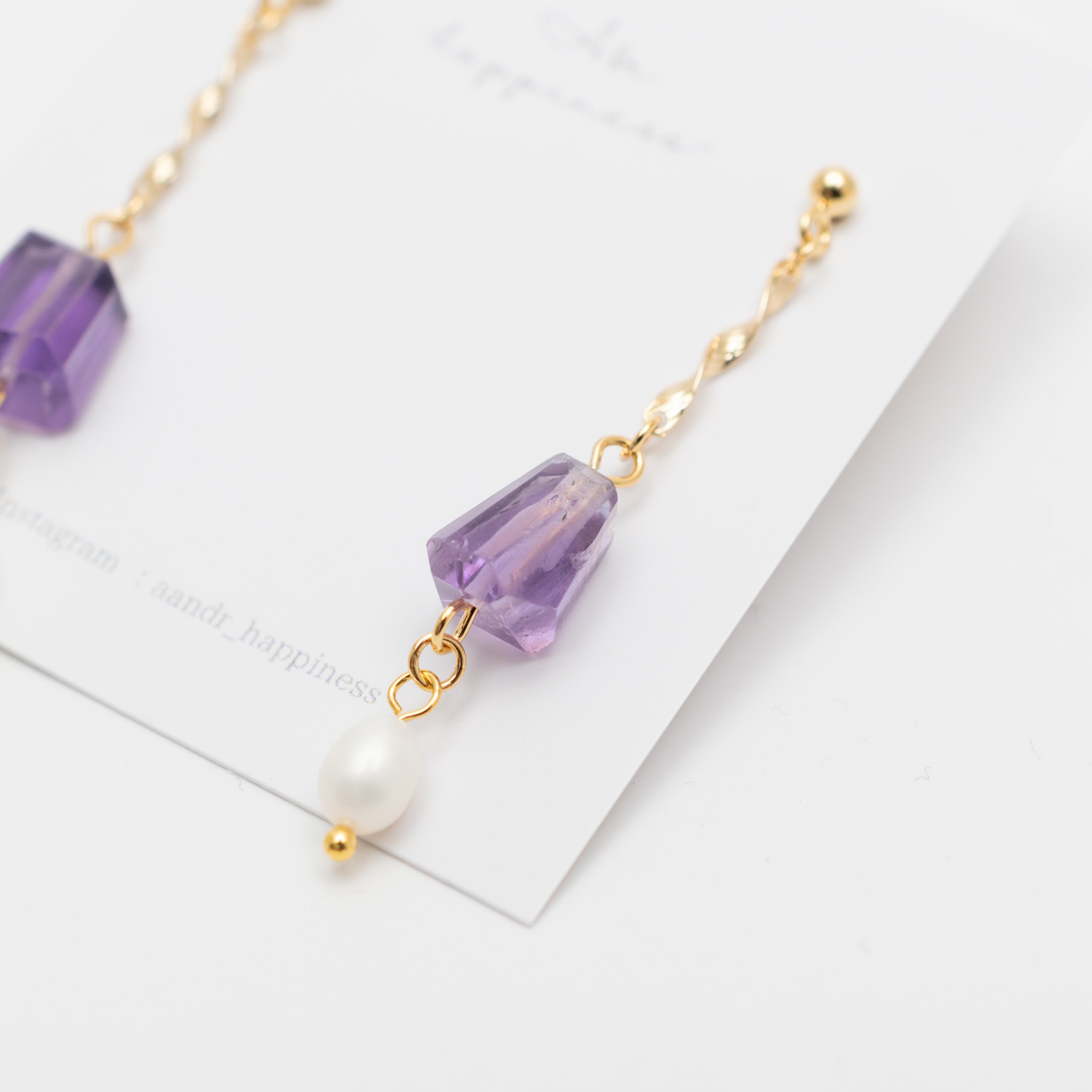 A&r happiness 様 作品 | No.42 アメジスト×淡水パールピアス